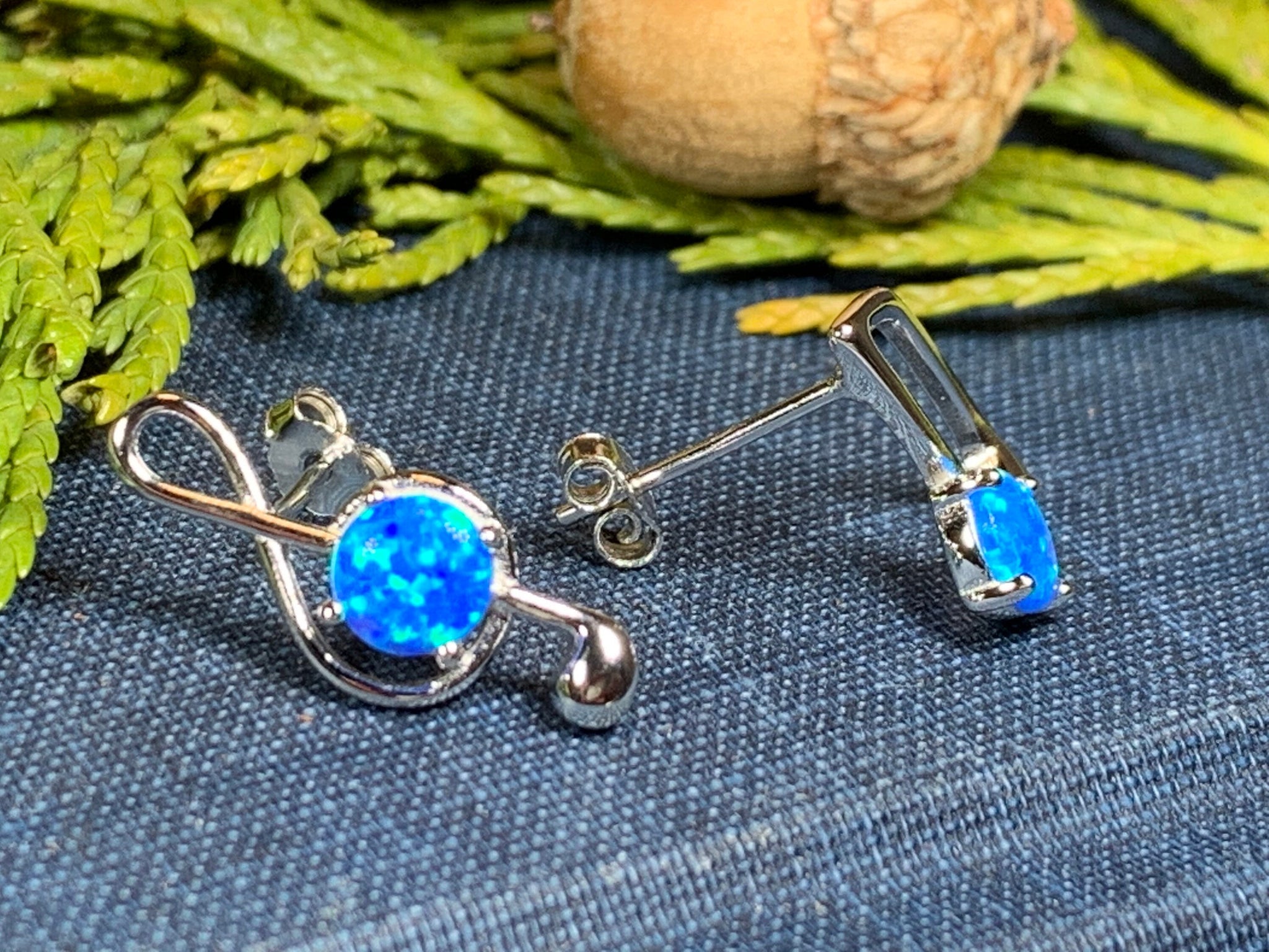 1/2" x 7/16" in size with ocean blue lab created opal - perfect for every day wear.