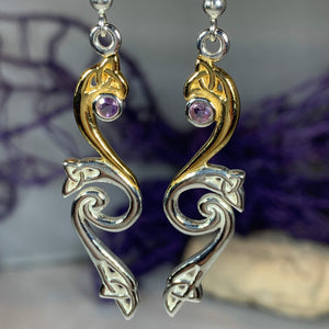 Celtic earrings meticulously crafted from fine sterling silver with 14k gold accents (14k 2 micron gold plated).