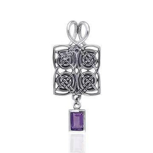 Solid Sterling Silver Rectangle Celtic Pendant with your choice of chain length and authentic gemstone dangle.