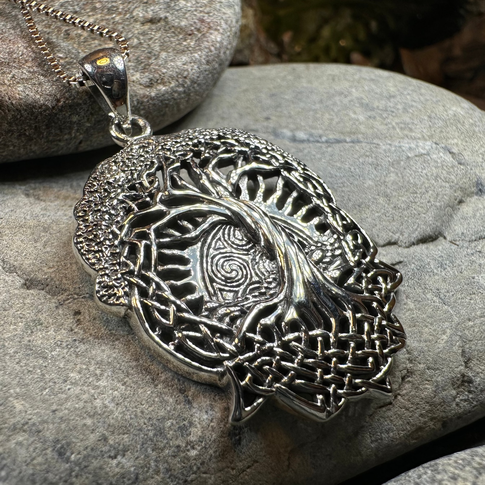 1 1/4" x 1" in solid sterling silver on an 18" chain. Hallmarked 925
