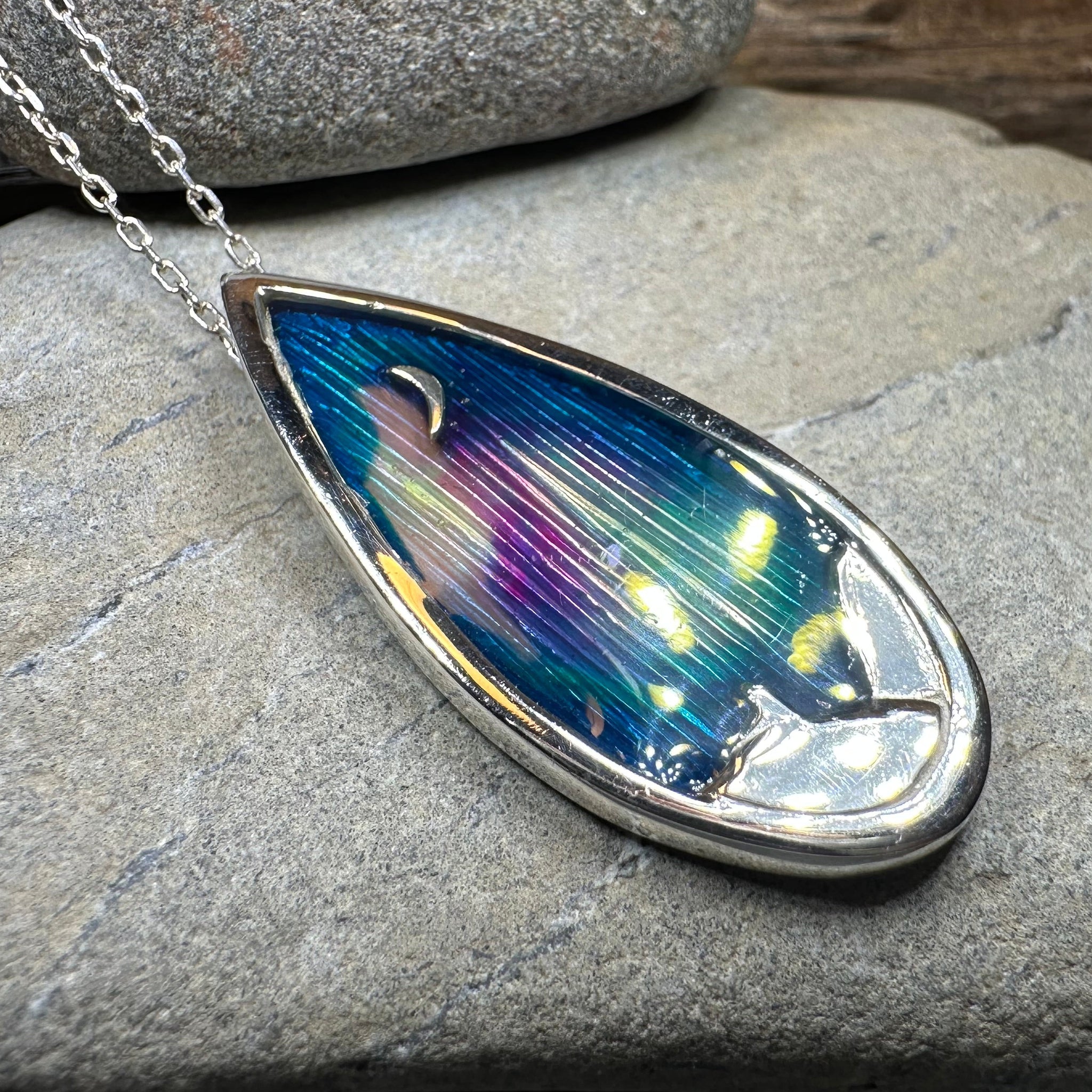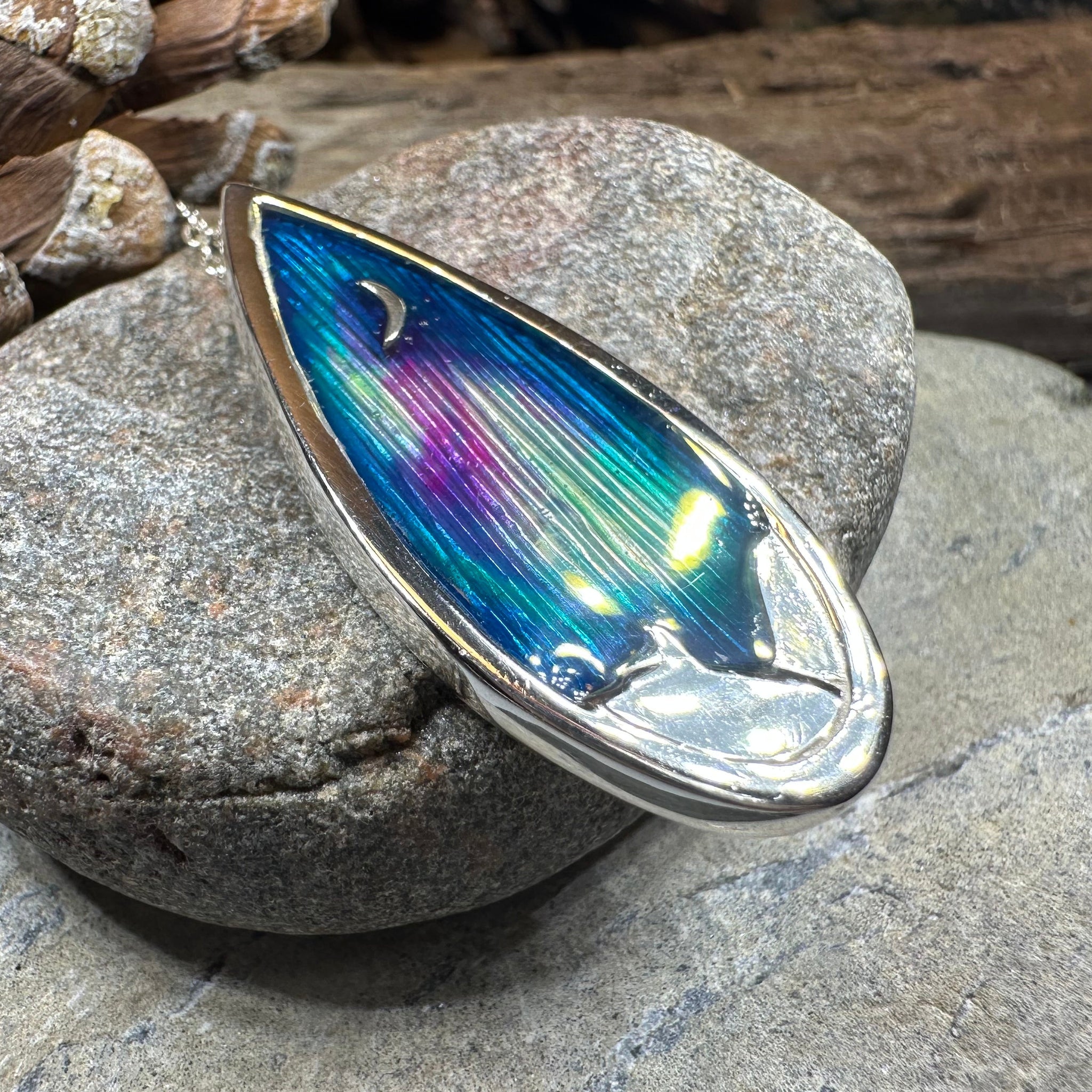 The beauty of the Celtic Northern Lights Silver Necklace is a beautiful reminder of the amazing glory of the light spectacle as seen from the shores of the Shetland Islands and other parts of the world.