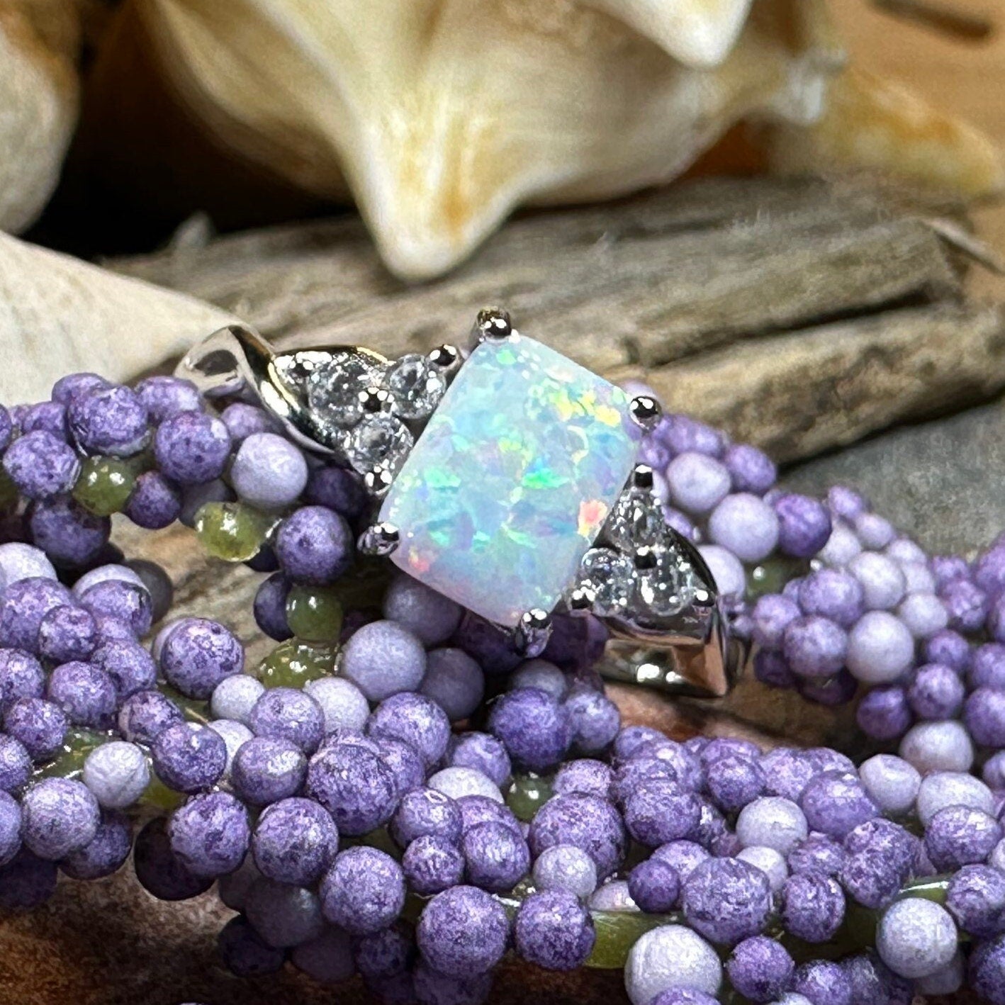 If you are looking for a ring that makes a feminine, but bold statement - this gorgeous White Mist opal ring is the one for you.