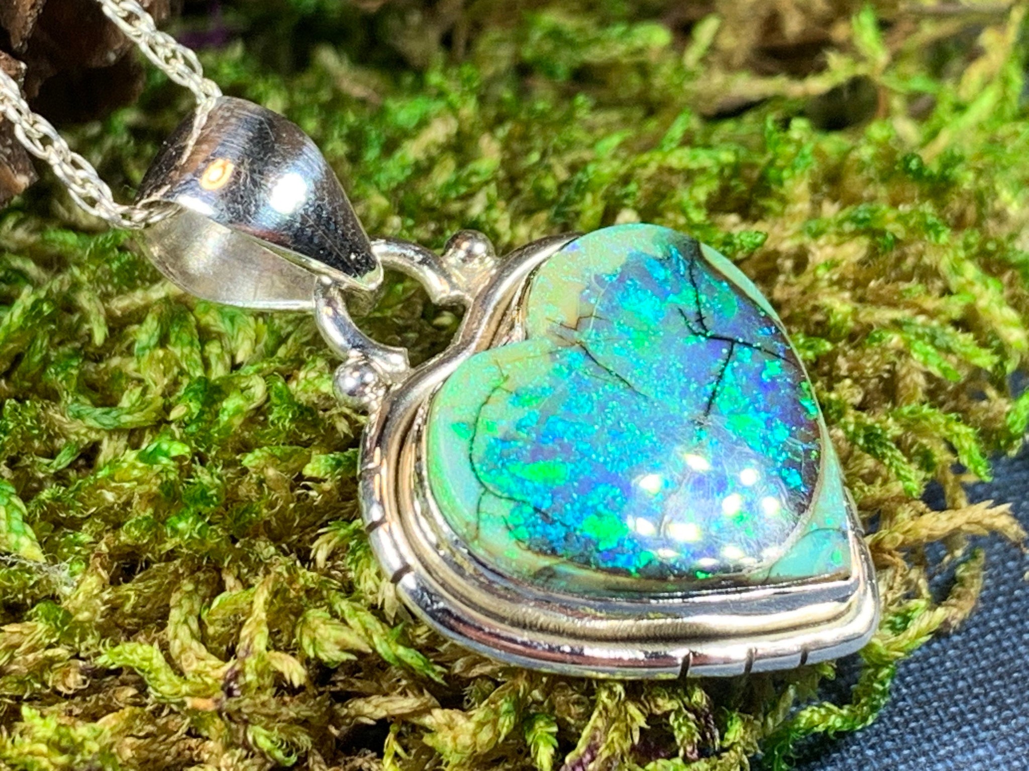 Gorgeous glowing green agates or shimmering pink mother of pearl in a heart shape set in solid sterling silver. The stone shimmers in a rich deep and mysterious hue - beautiful cabochon stones with a soft, rich color that will dazzle you! A touch of marcasite gemstone around the border adds additional sparkle and interest.