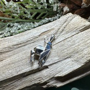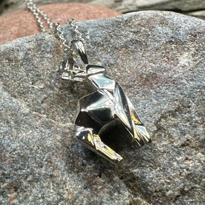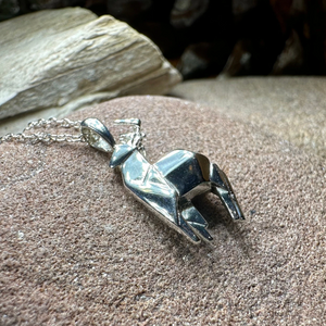 Origami stag is Sterling silver with 18 inch chain.