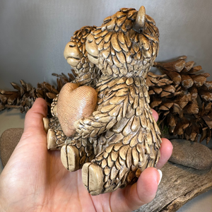 The highland cows of Scotland are majestic animals that are adored by people all over the world. This artisan figurine has every hair and little detail worked out in hand cast resin with handpainted detailing.