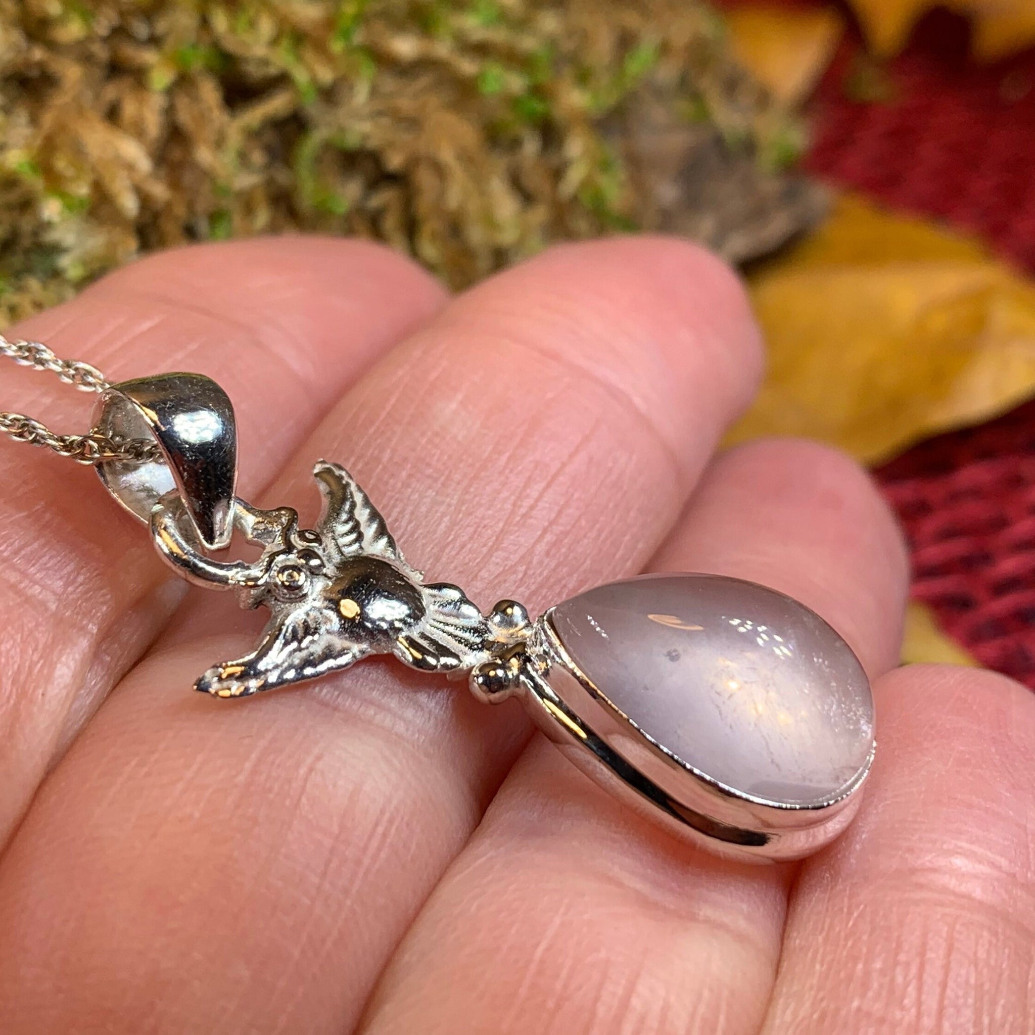 1" x 1/2" solid sterling silver and rose quartz stone pendant comes on a sterling silver chain. This whimsical owl would make anyone smile! The perfect gift for the owl lover or teacher in your life.