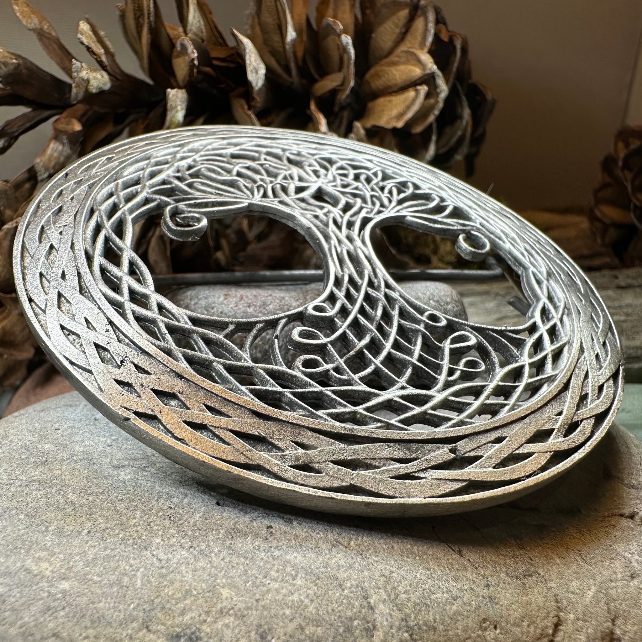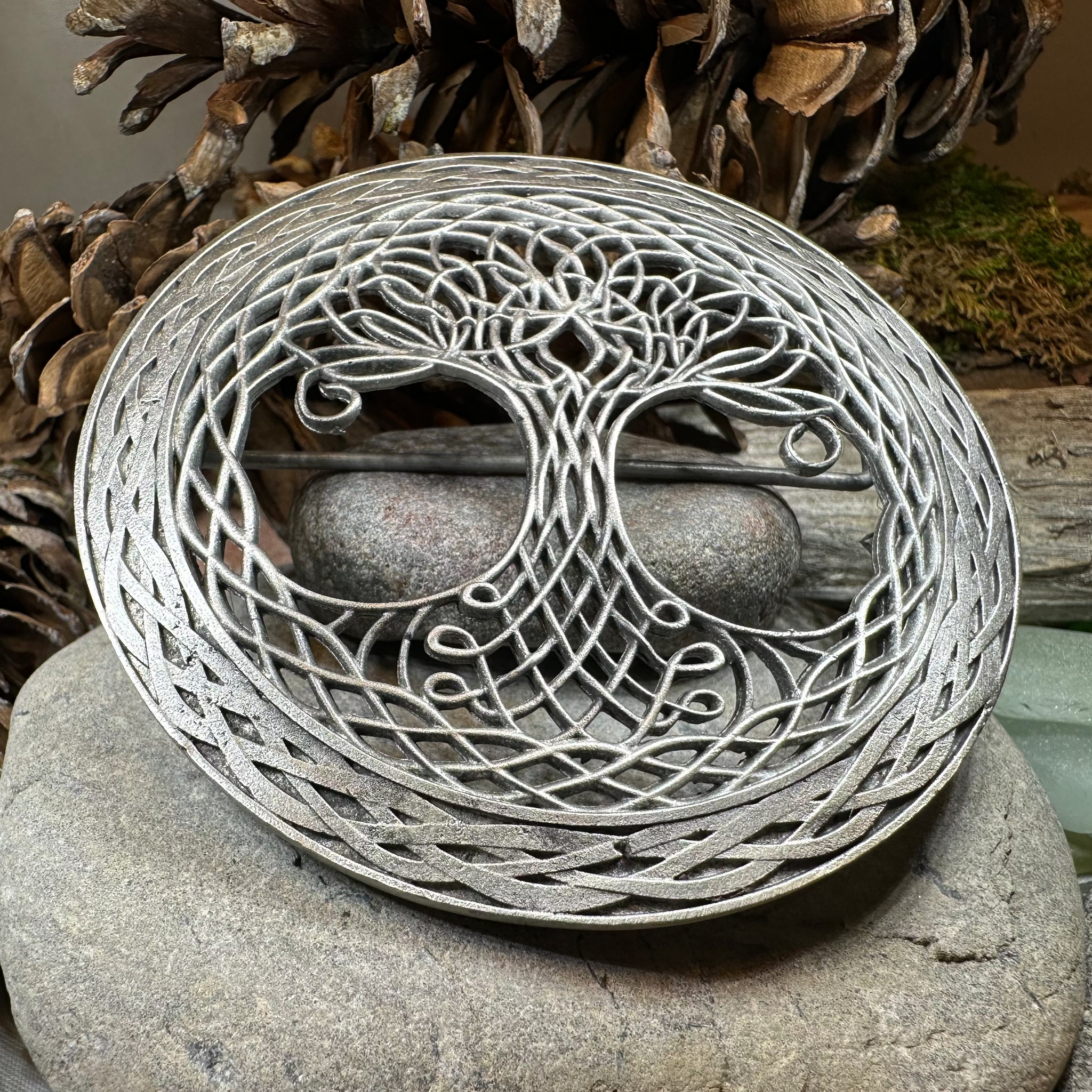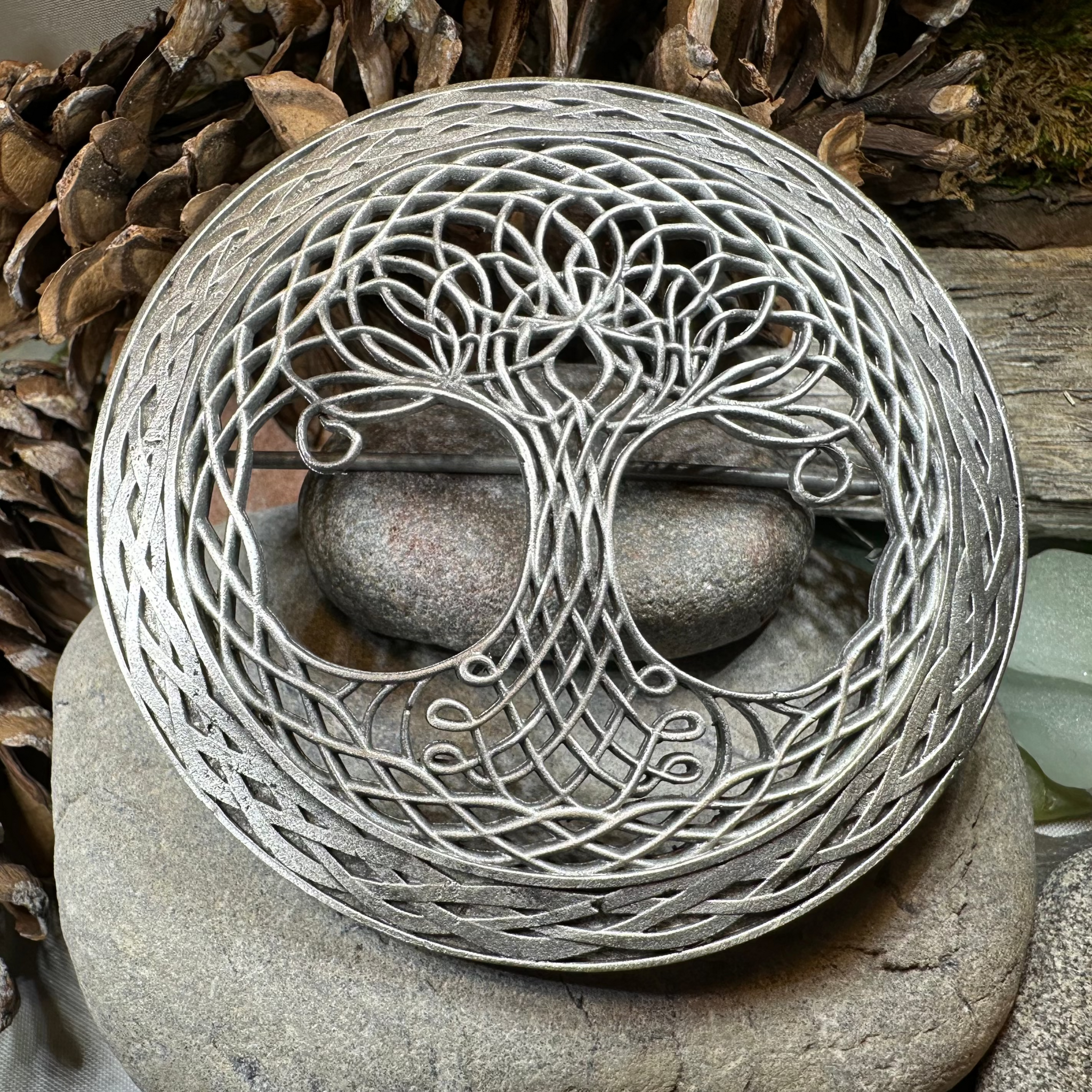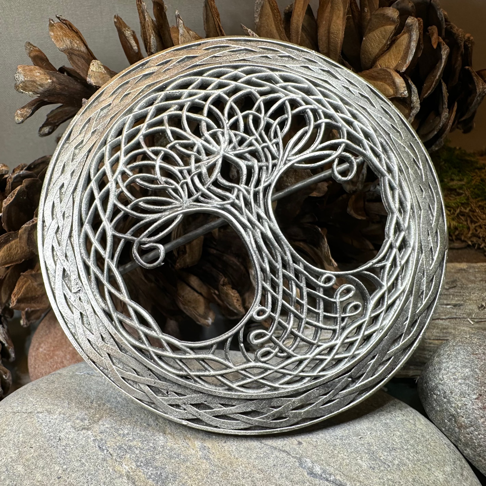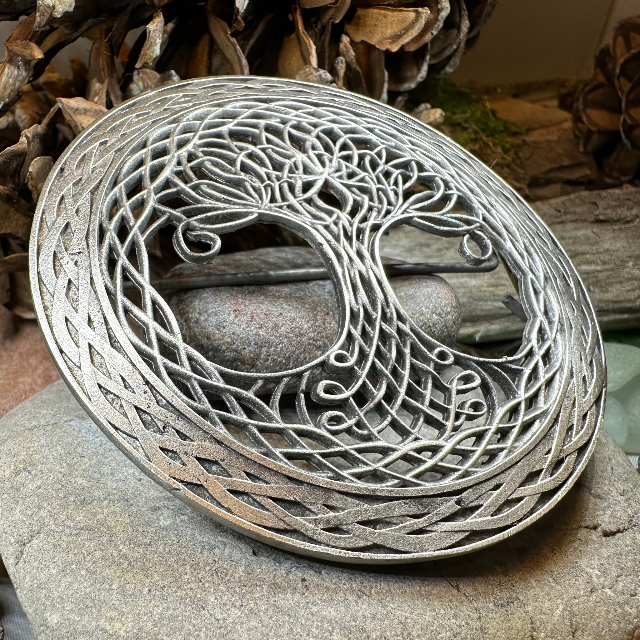 This beautiful Celtic tree pin is made in matte finished pewter that will never tarnish or rust. The intricate Celtic interlace design makes this large pin a unique additional to your outfit.