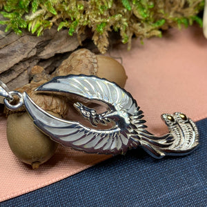 This phoenix, a legendary creature representing strength and rebirth, is celebrated in fine sterling silver accented with gemstones of your choice.