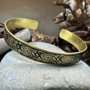 Bracelet is in the cuff style with an open back and can be adjusted for almost any wrist size. A rich, traditional Celtic look at a very amazing price!