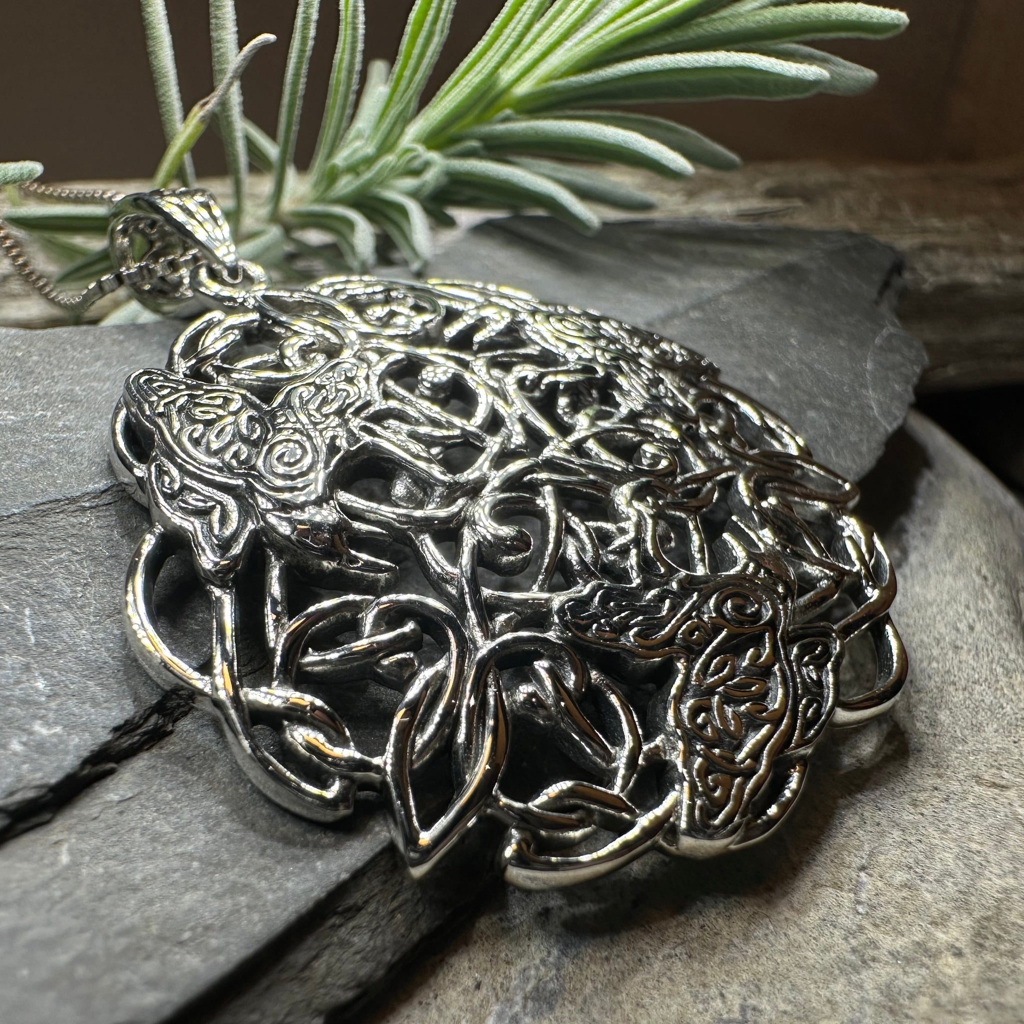 Solid Sterling Silver Pictish Celtic Raven Pendant on an 18" sterling silver chain