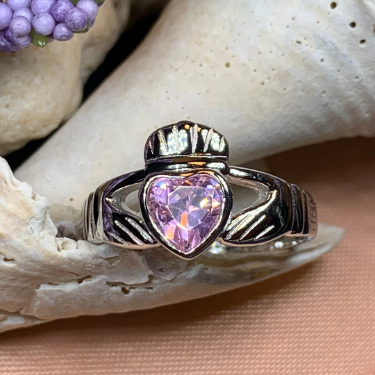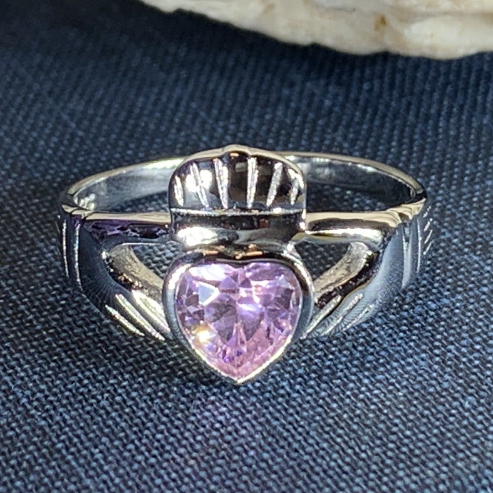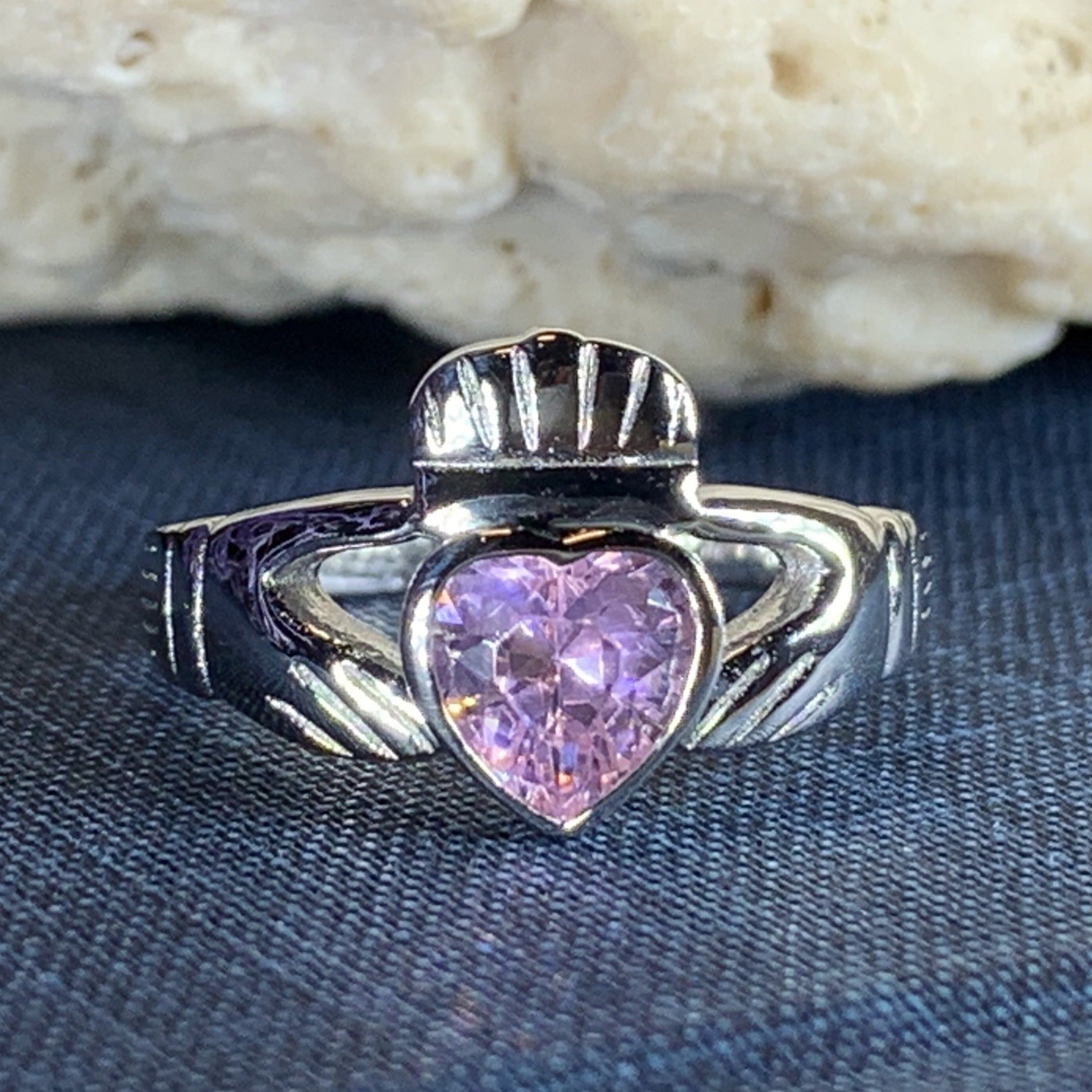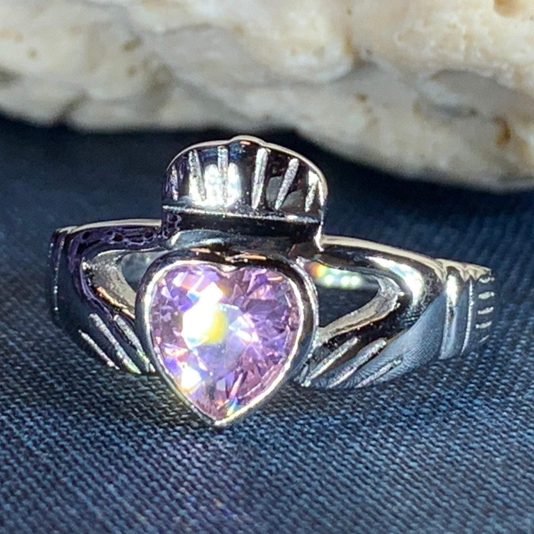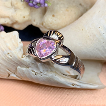 • Load image into Gallery viewer, Pink Sapphire Claddagh Ring