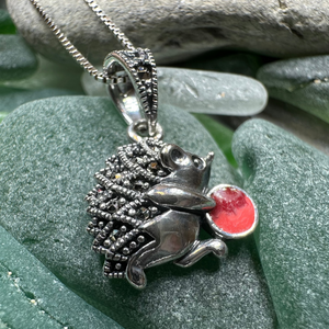 Handmade Hedgehog sterling silver pendant with marcasite gemstones on an 18" chain.