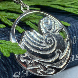 What a beautiful puffin! This beautifully well done necklace is full of Scottish pride! This piece looks very regal and joins together traditional Celtic knot work with the puffin beautifully!
