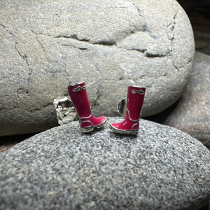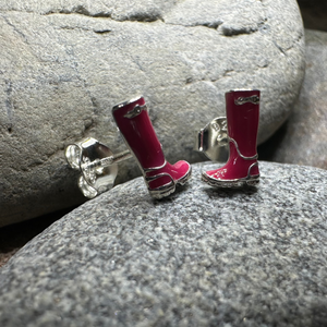 The perfect colorful Wellies rain boot post back earrings in solid sterling silver with pink enamel.