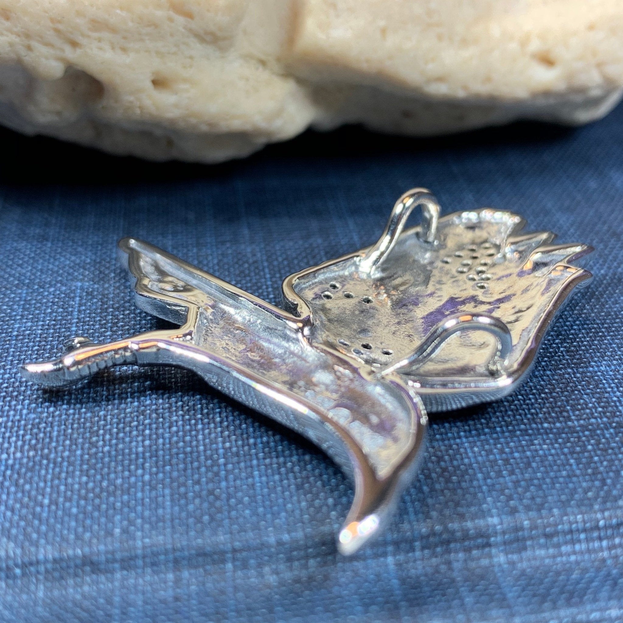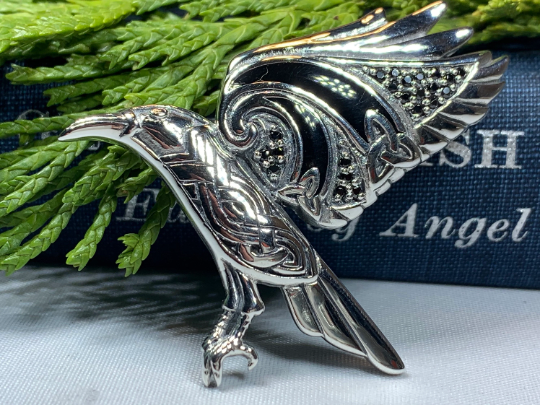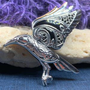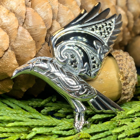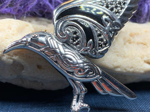 Solid Sterling Silver Raven Pendant with Beautiful Gemstone.