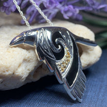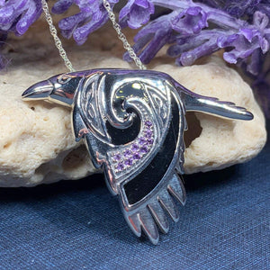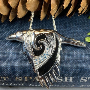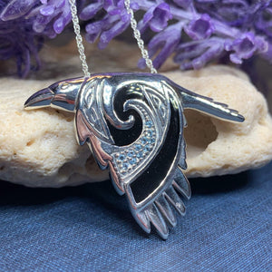 The mythical wisdom of a Raven ~ Solid Sterling Silver Necklace with Beautiful Gemstone.