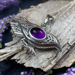 The mythical wisdom of a Raven ~ Solid Sterling Silver Necklace with your choice of gemstone.