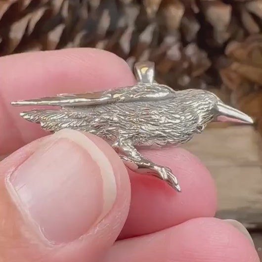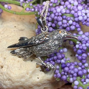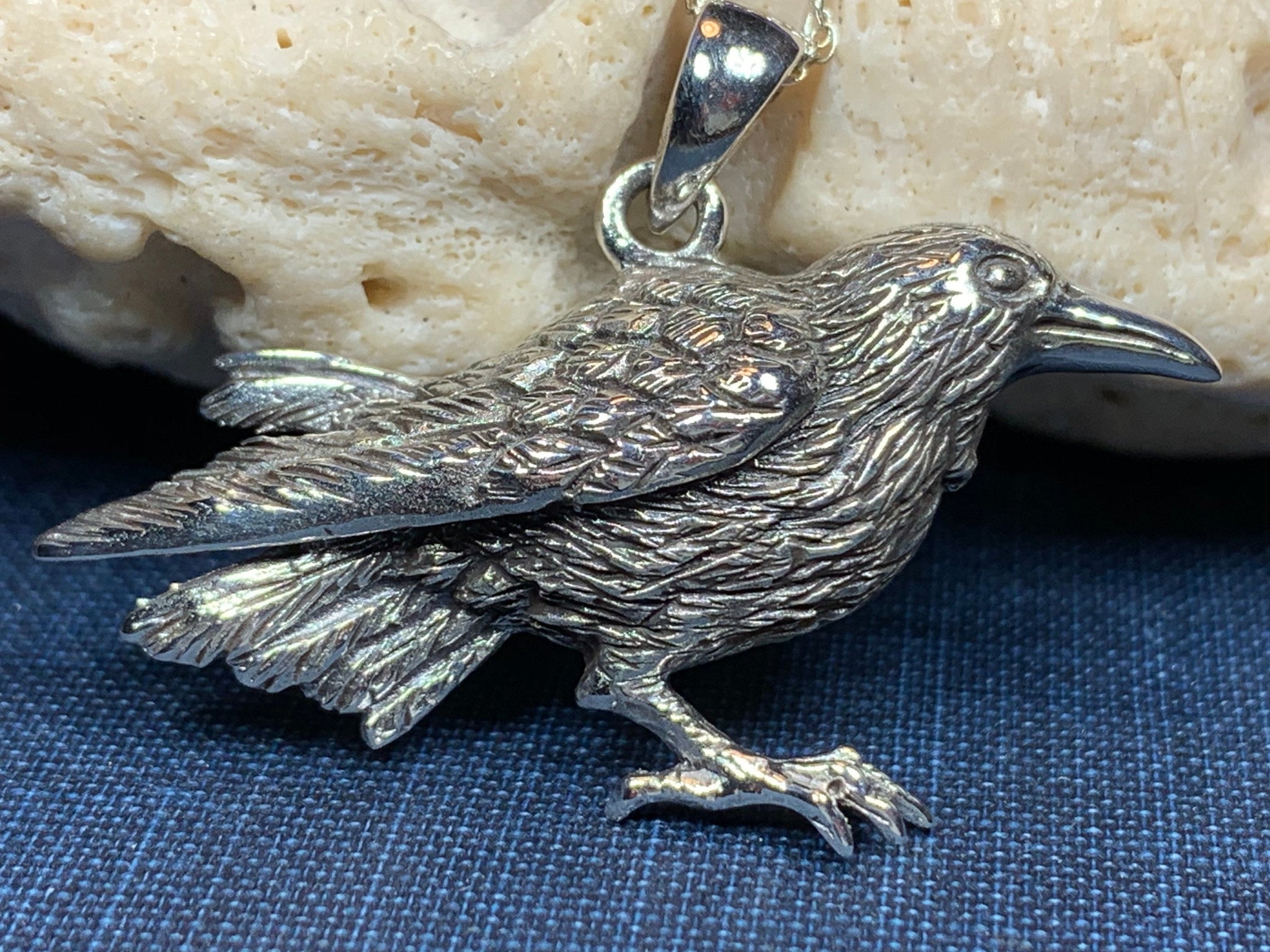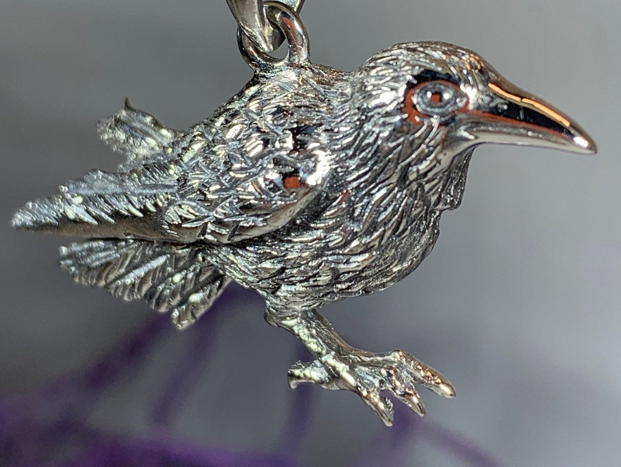 Solid Sterling Silver - The mythical wisdom of a Raven ~ Solid Sterling Silver Necklace