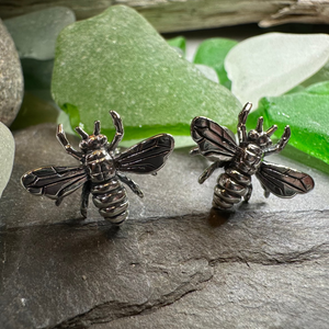 These handmade earrings are a work of art! Solid sterling silver in the shape of an elegant bee with realistic detailing. The bee symbolizes community, brightness and personal power.