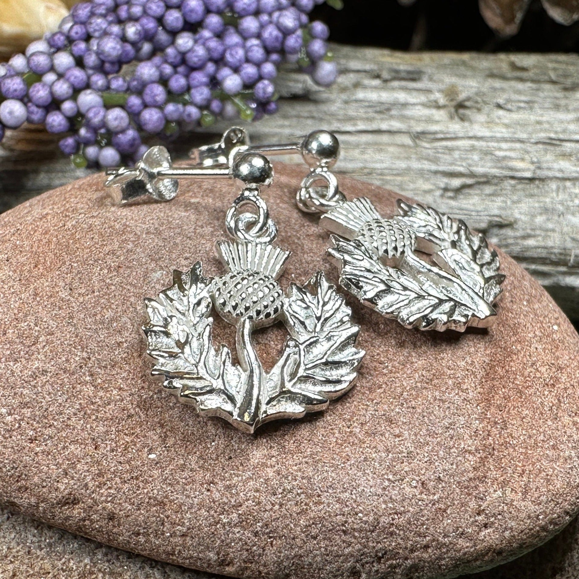 An attractive Scottish Thistle Sterling Silver Earrings using a traditional design featuring a Scottish Thistle, the national emblem of Scotland.