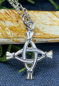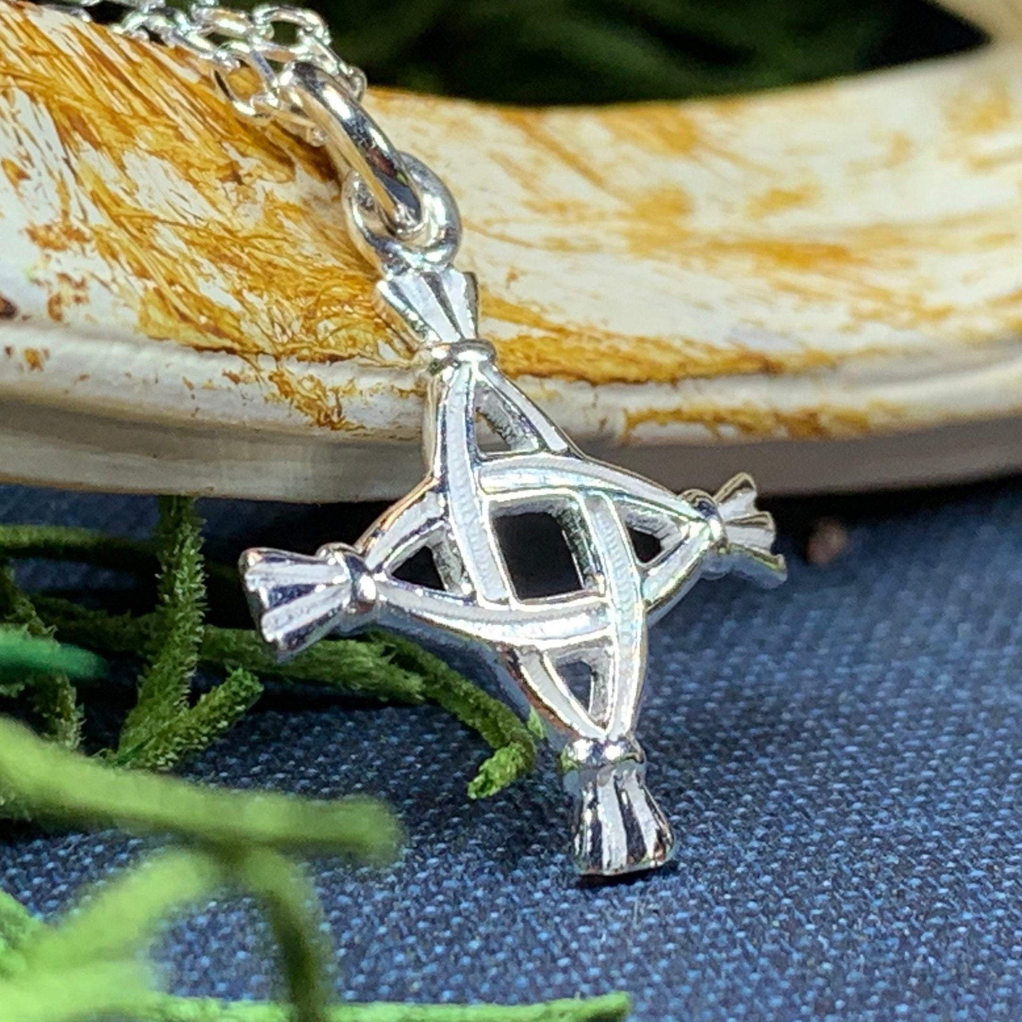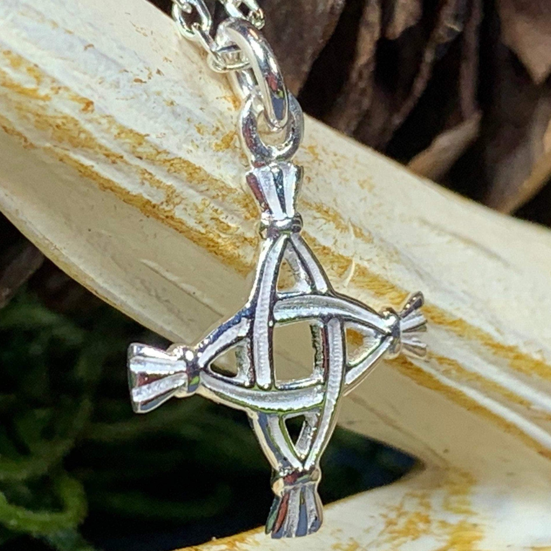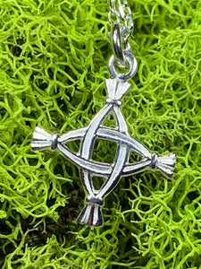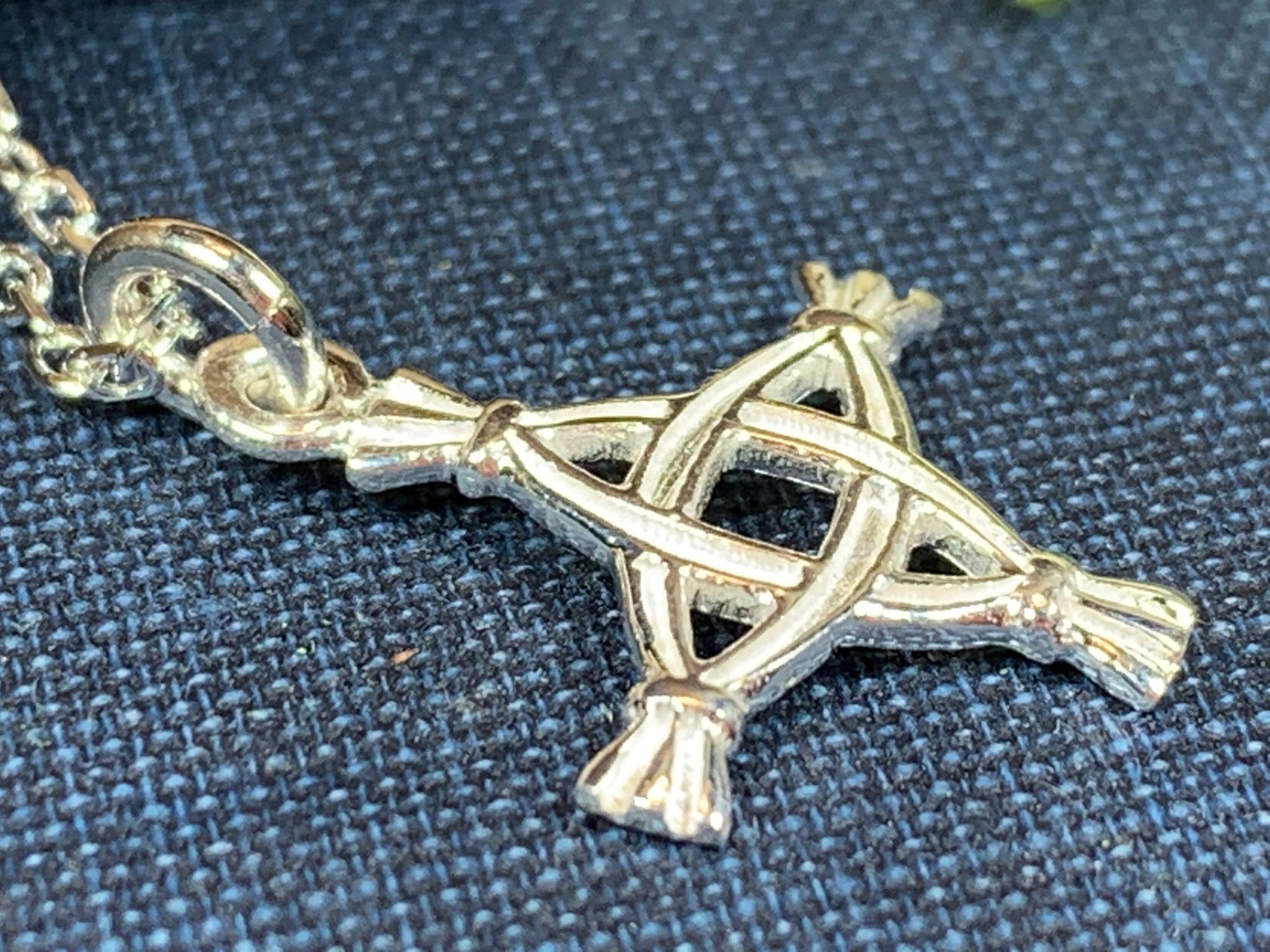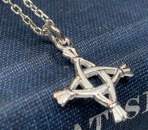 Petite St. Brigid's cross in solid sterling silver on an 18" silver chain.