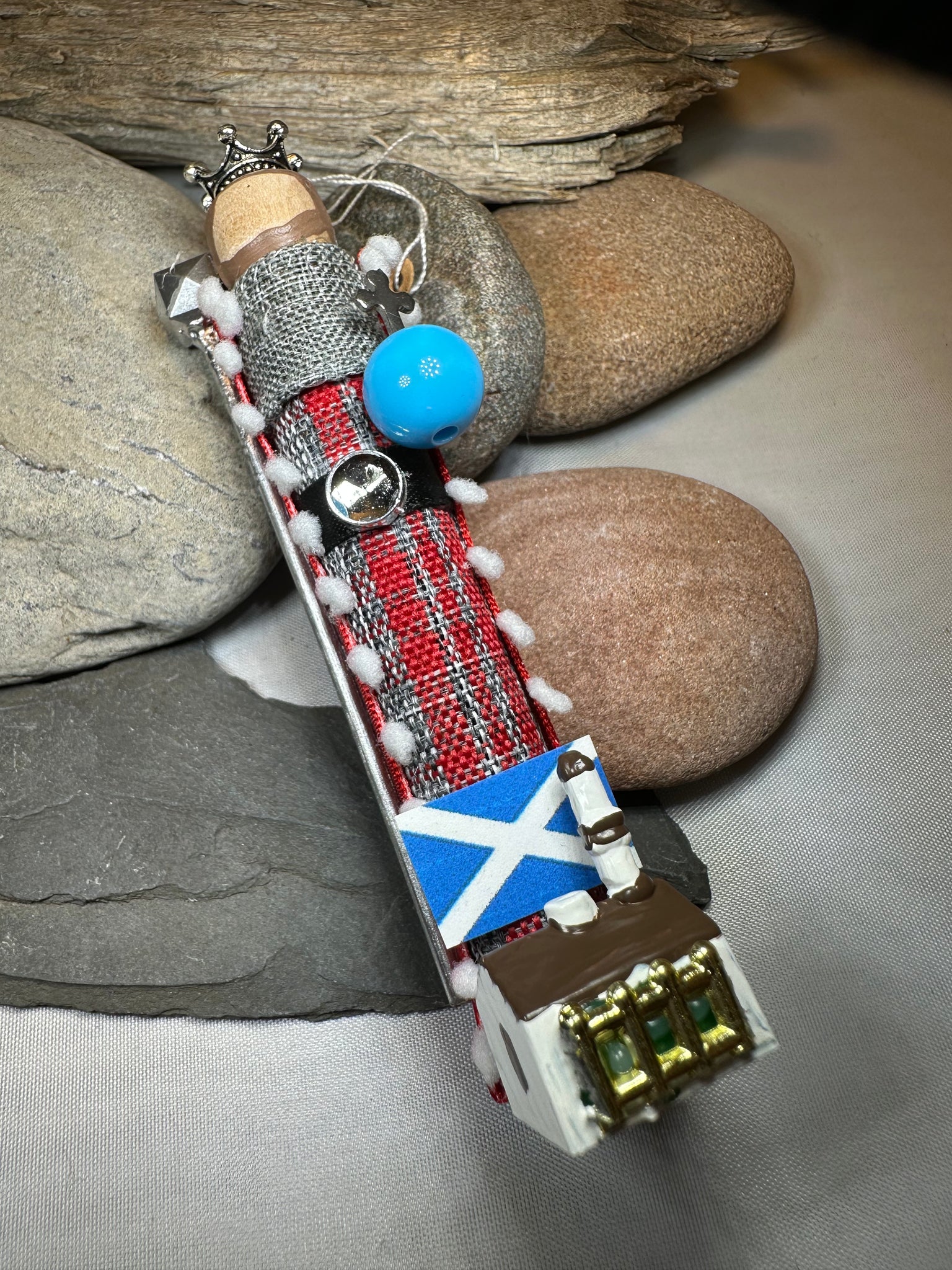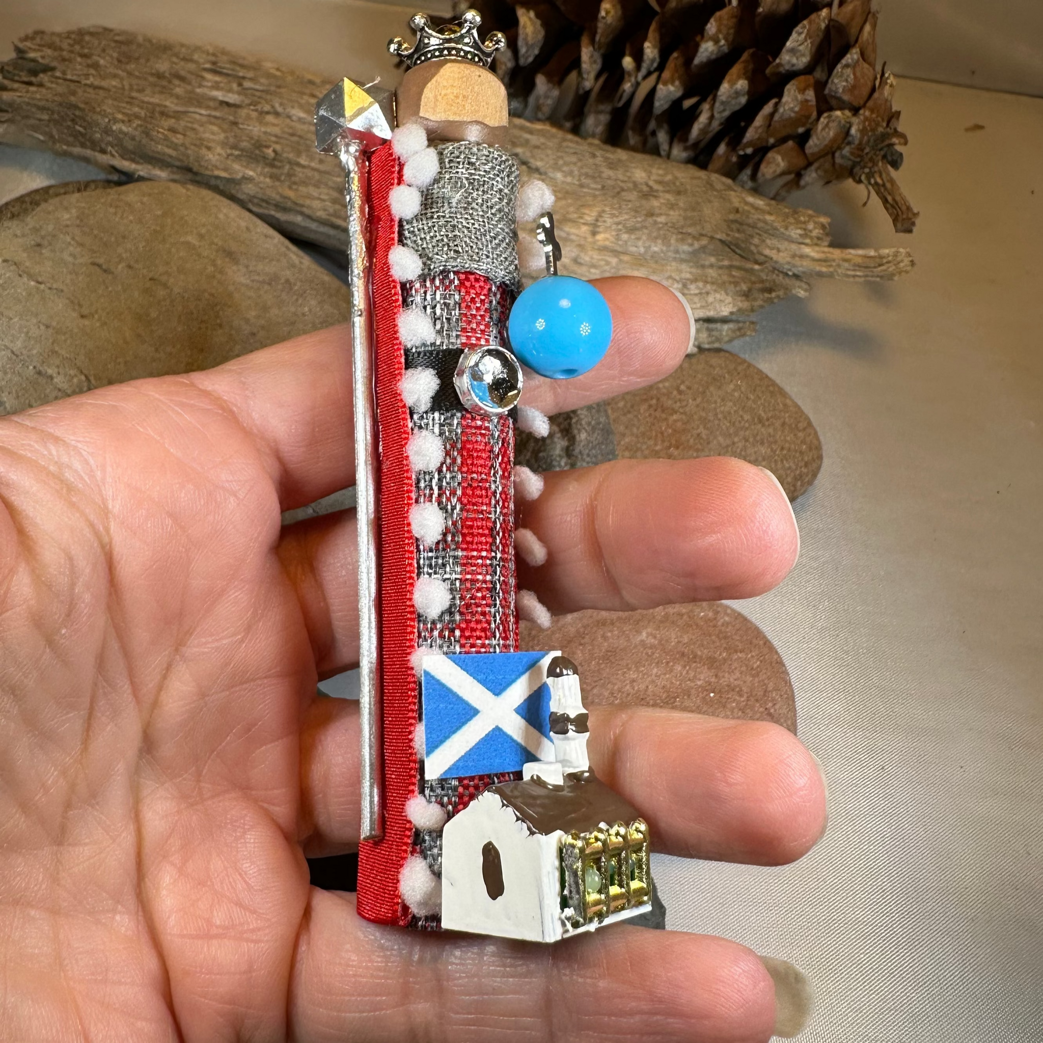 Handmade original St. David of Scotland wooden doll ornament. Perfect for the Christmas Tree. Bring out on his feast day or for a Novena. Gift for a birthday or sacrament (Baptism, First Communion, Confirmation, Holy Orders, Marriage) celebration. Teacher, priest, grandparent gift.