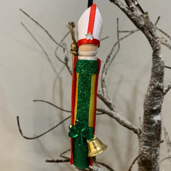 Handmade original St. Kieran of Saighir (St. Kieran the Elder) Wooden Doll Ornament.