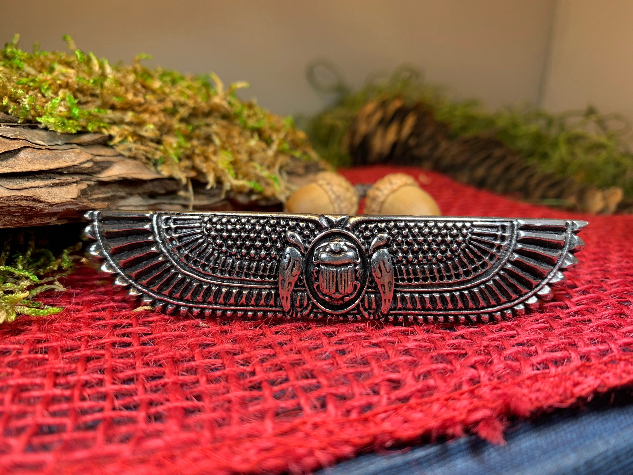 Pewter Scarab Hair Clip is a perfect accessory to dress up a ponytail, bun or any hair style. The detail on this piece is amazing - you can see every detail!
