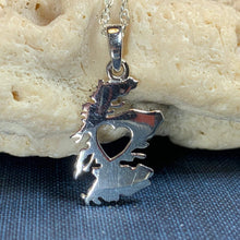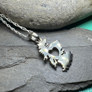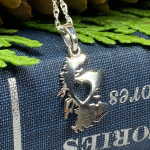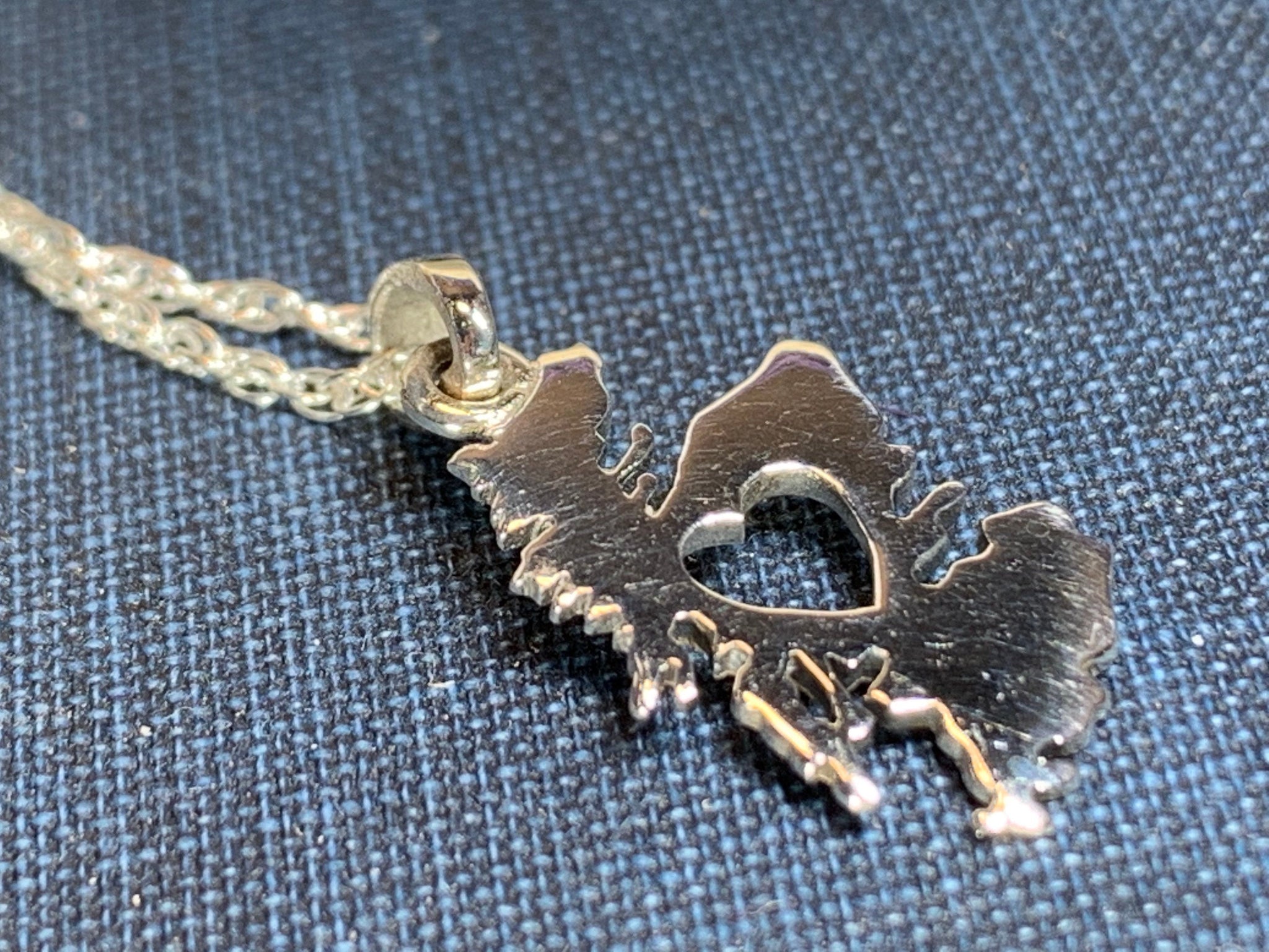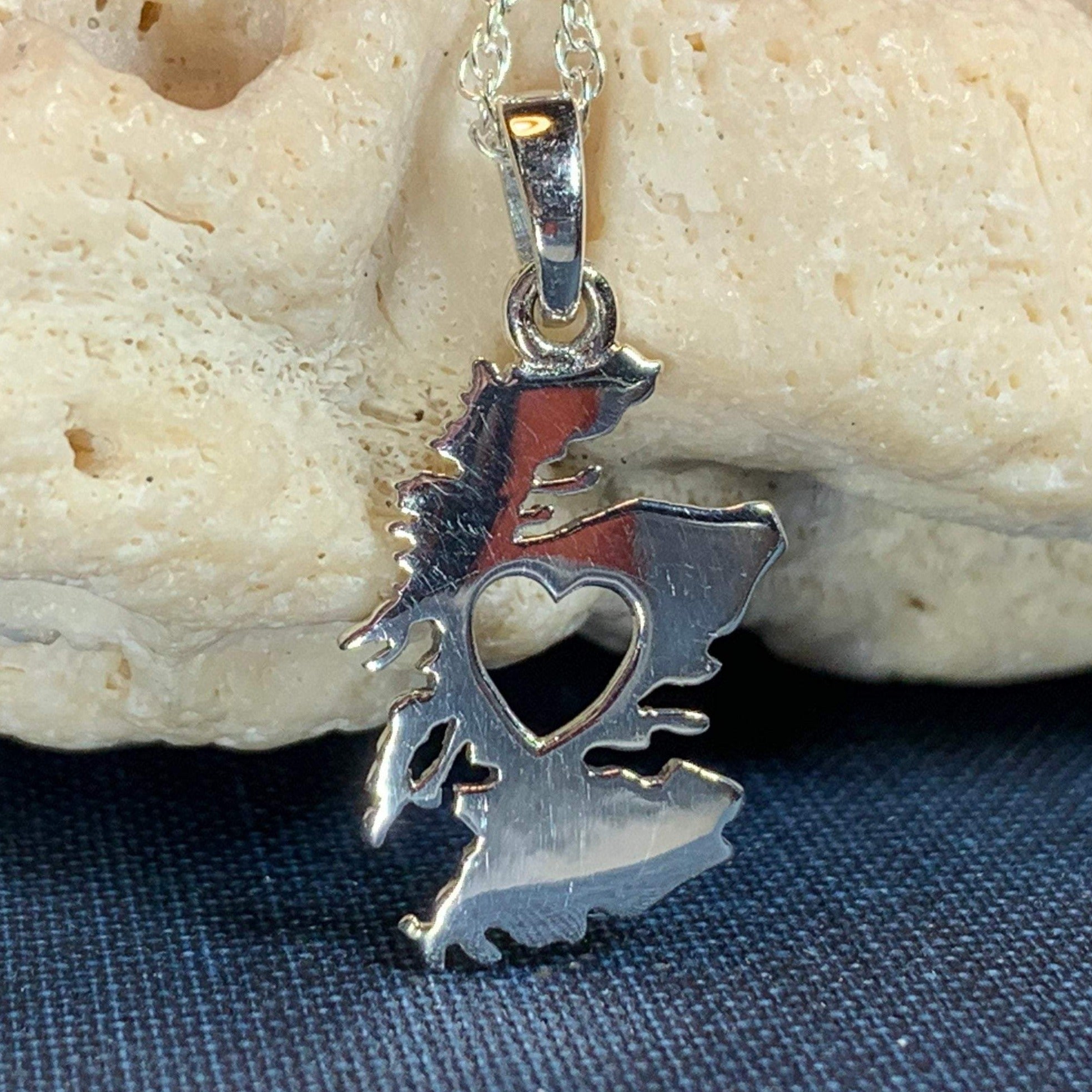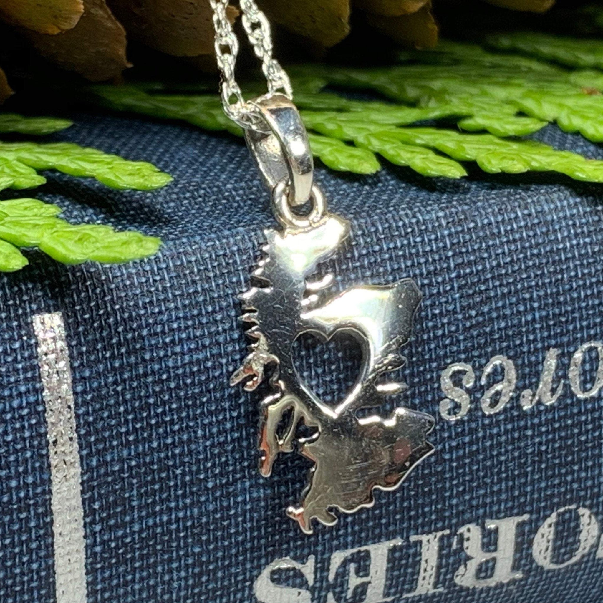 Show your love of Scotland by wearing this outline of the country with a little heart cut out of the center.