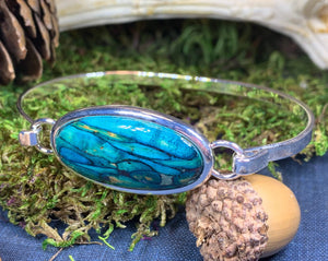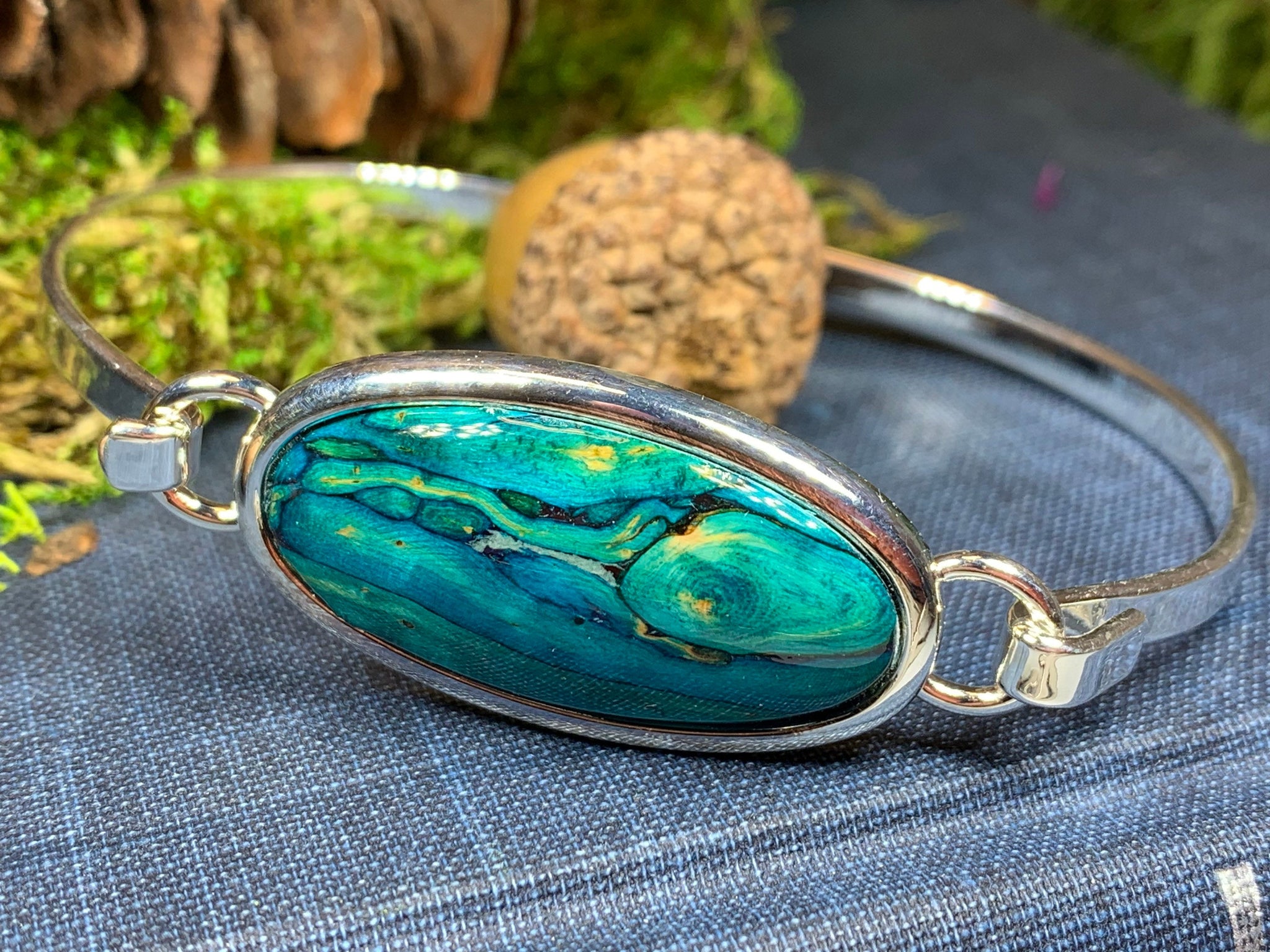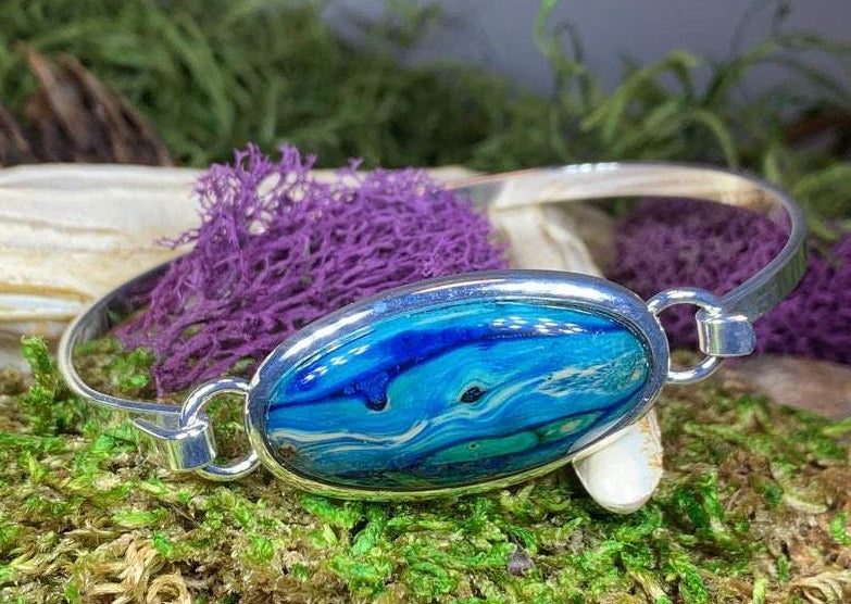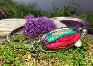 This bracelet features a large and beautiful center stone created from Highland heather wood. The stems are collected in the Highlands, compressed into this unique material, and hand painted in the colors of the Highlands!