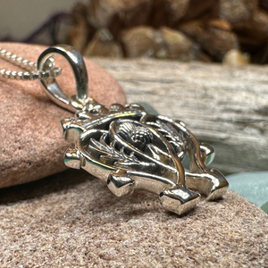 Beautiful 3/4" x 3/4" highly polished sterling silver pendant with a detailed thistle on an 18" sterling silver chain.
