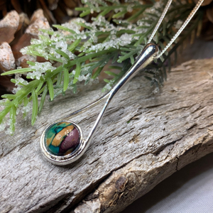 This beautiful piece is a work of art that honors Scotland and the Highlands. The end stone is made from heather collected in the Highlands, dyed in the vibrant colors of the countryside, and compressed into this gloriously colorful stone that will last a lifetime.