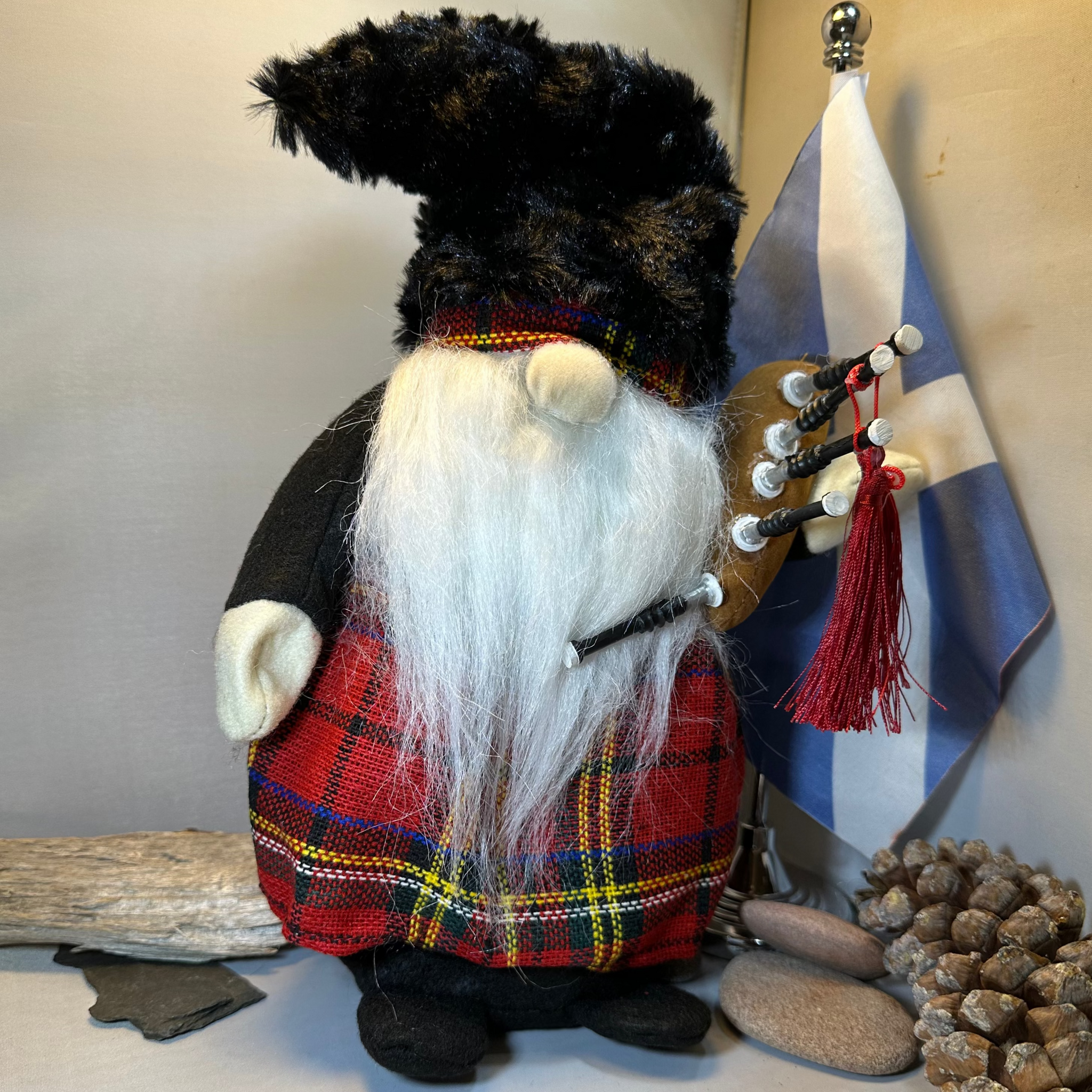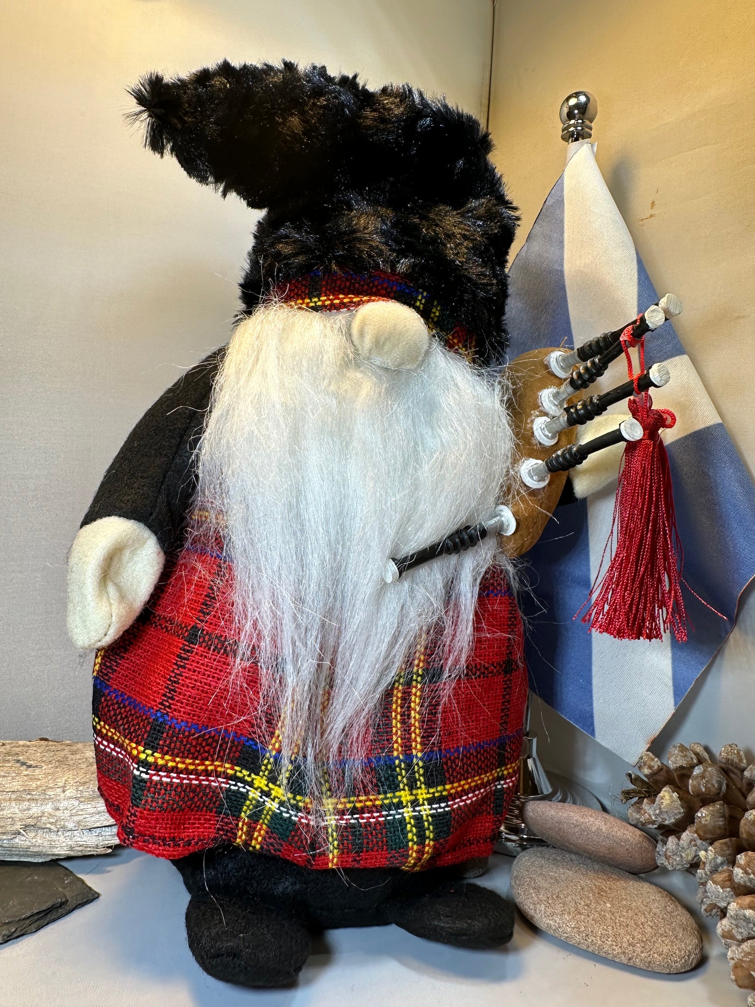This lovely plush Artisan Scottish Bagpiper Gnome will have you dreaming of the Highlands! He stands 12" tall and has an adorable fuzzy beard and set of bagpipes.