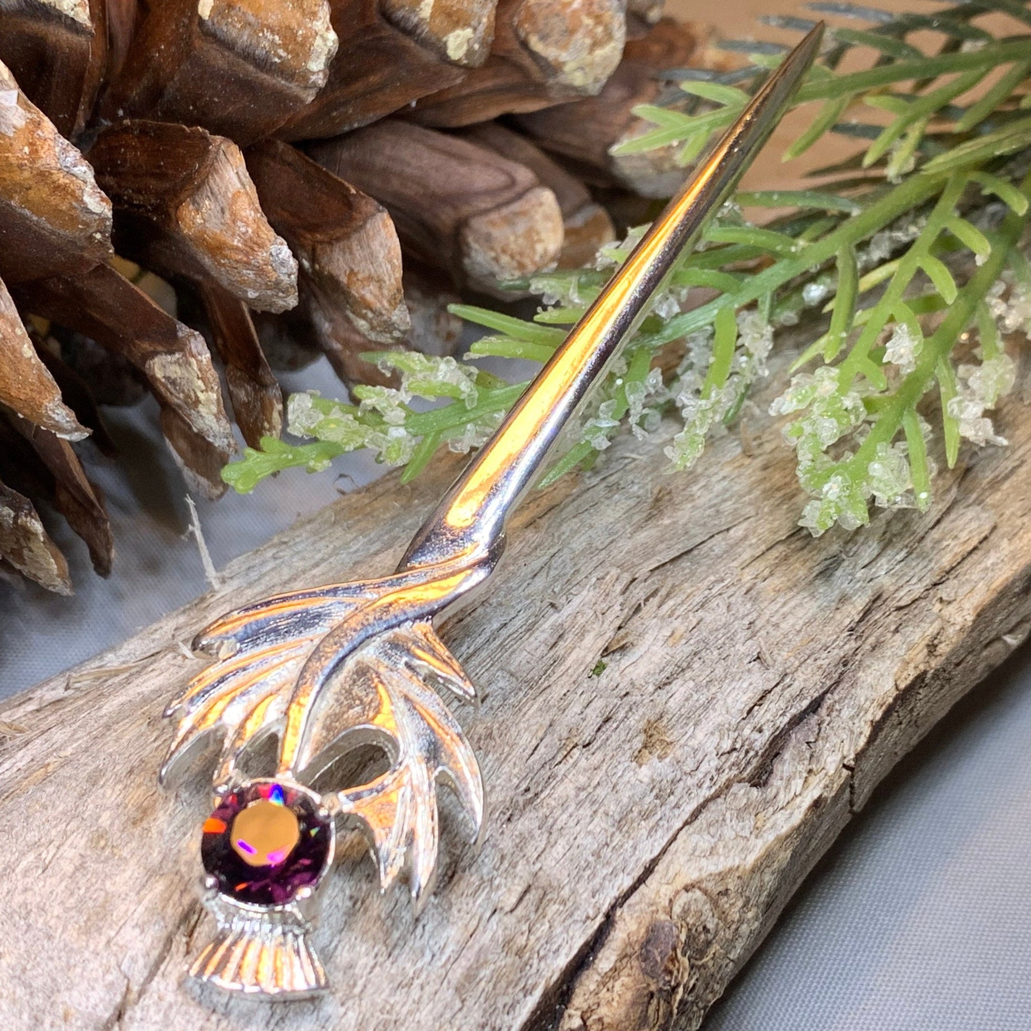 Kilt pins are NOT just for kilts! This pin is made with an extra strong pin to handle thicker fabrics - making it the perfect pin for coats, jackets, skirts, hats or anywhere else a pin would look beautiful. It is a great pin for a ladies cape or ruana wrap!
