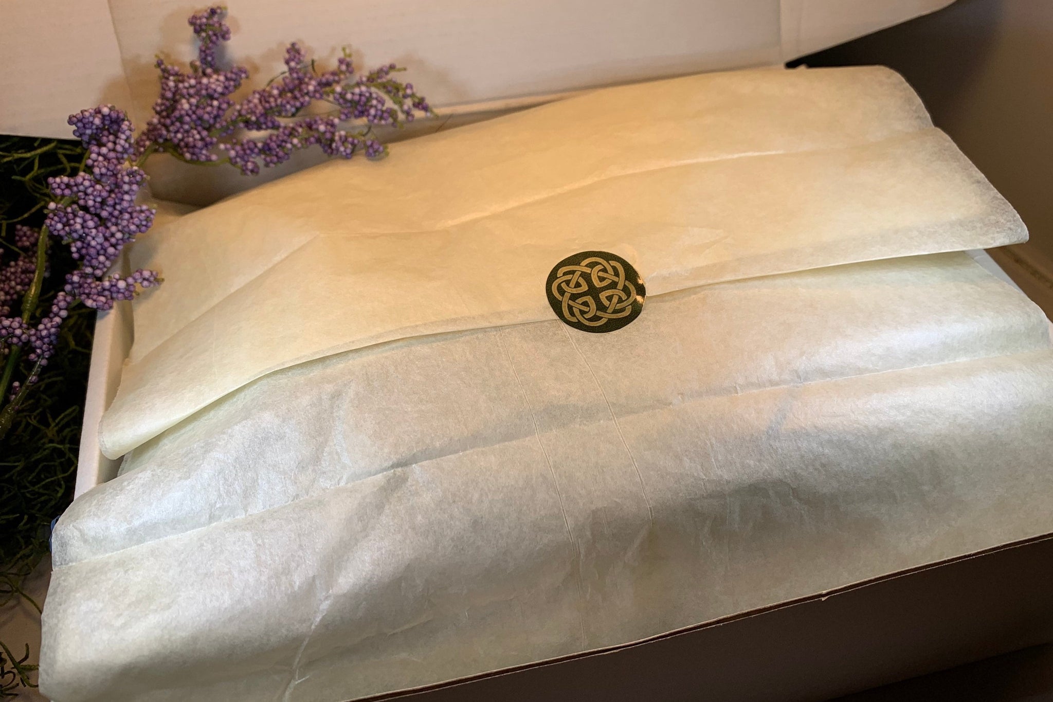 Gift boxes come packed securely in a white hamper box with decorative crinkle paper and wrapped in tissue paper with a Celtic sticker closure. A beautiful presentation for your loved one!