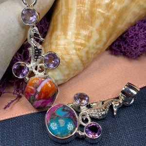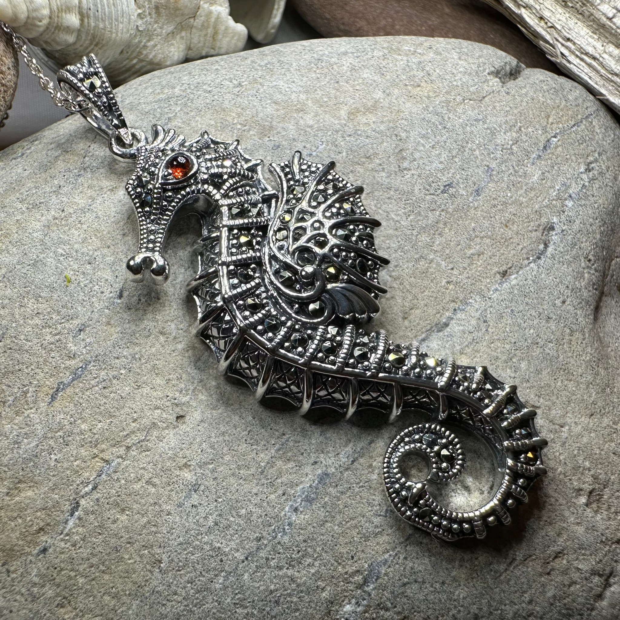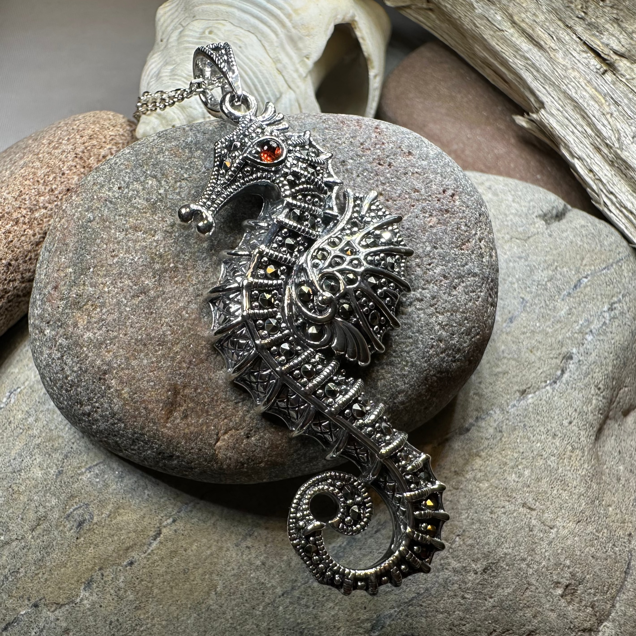 The seahorse stands out in nature—an upright fish adorned with protective armor, yet gentle in nature. Known for their lifelong bonds and tender devotion, seahorses embody love and loyalty. This exquisite piece makes a meaningful gift that celebrates both deep affection and the world of the sea.