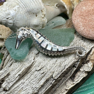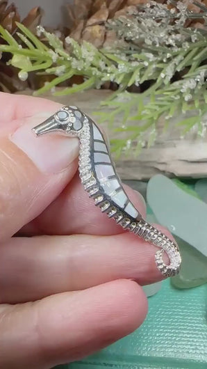 Solid Sterling Silver Seahorse Pendant with natural mother of pearl shell inlay