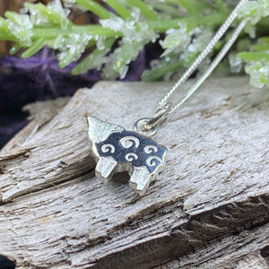 This petite solid sterling silver pendant adds a bit of whimsy with little curls representing the woolly creatures.
