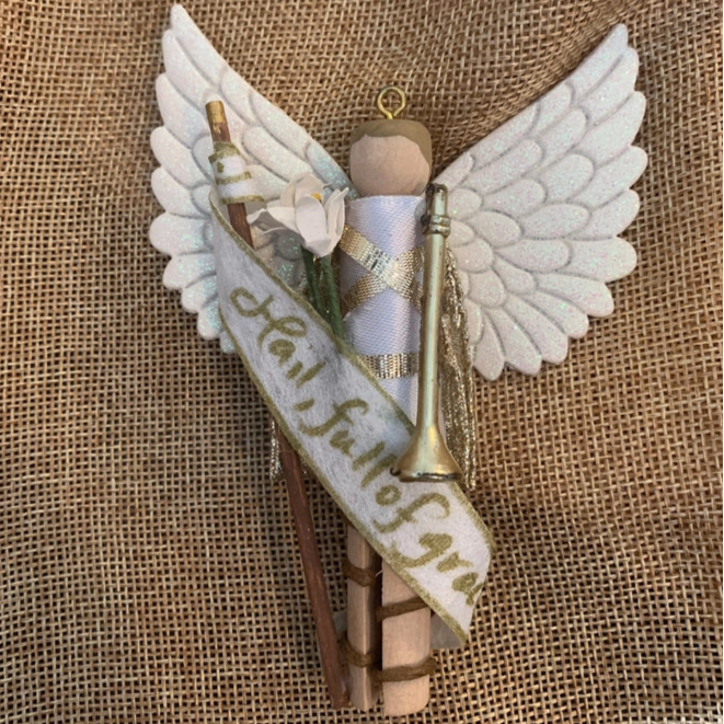 Handmade original St. Gabriel the Archangel wooden doll ornament. Perfect for the Christmas Tree. Bring out on his feast day or for a Novena. Gift for a birthday or sacrament (Baptism, First Communion, Confirmation, Holy Orders, Marriage) celebration. Teacher, priest, grandparent gift.