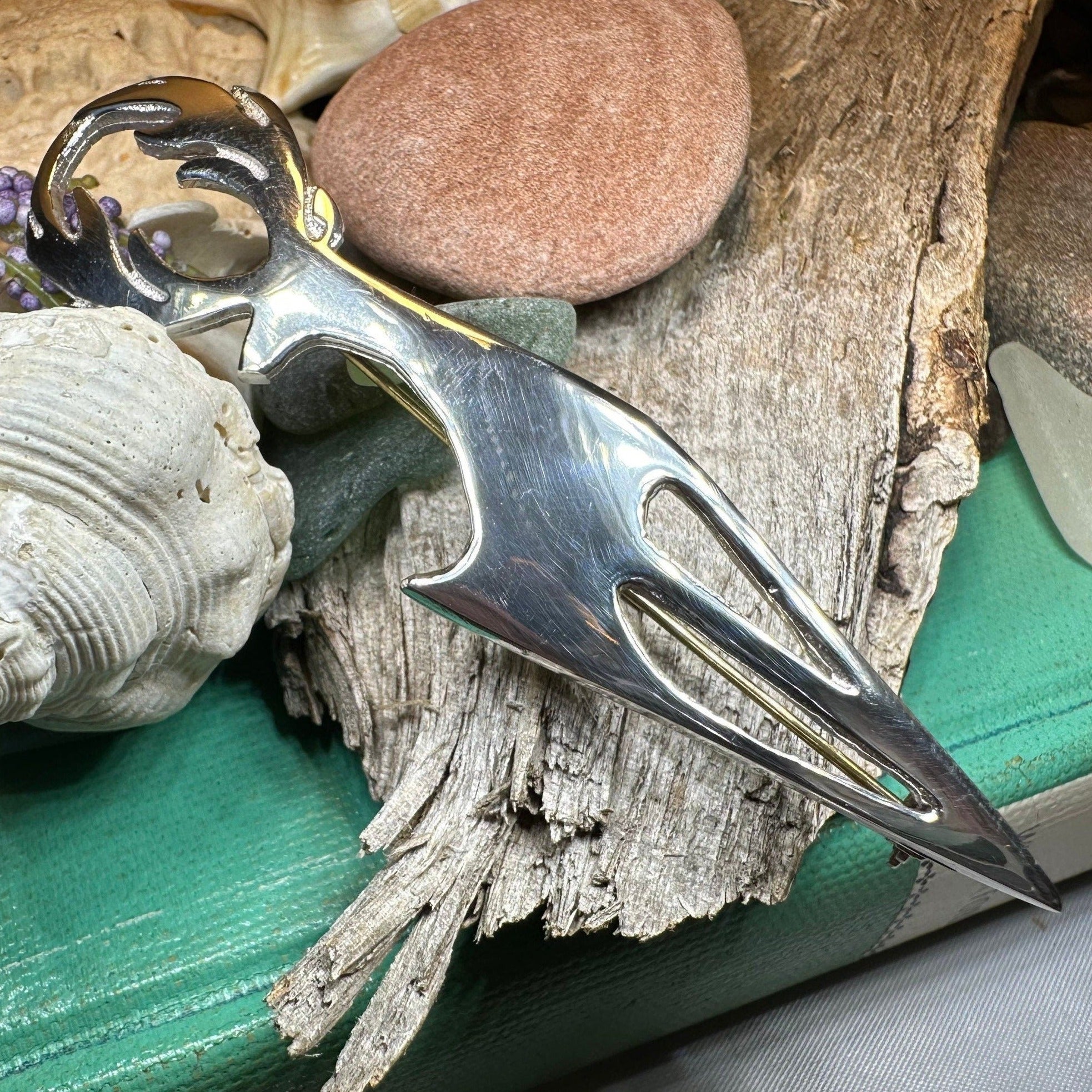 A truly beautiful kilt pin with a stylized stag with a beautiful set of antlers!