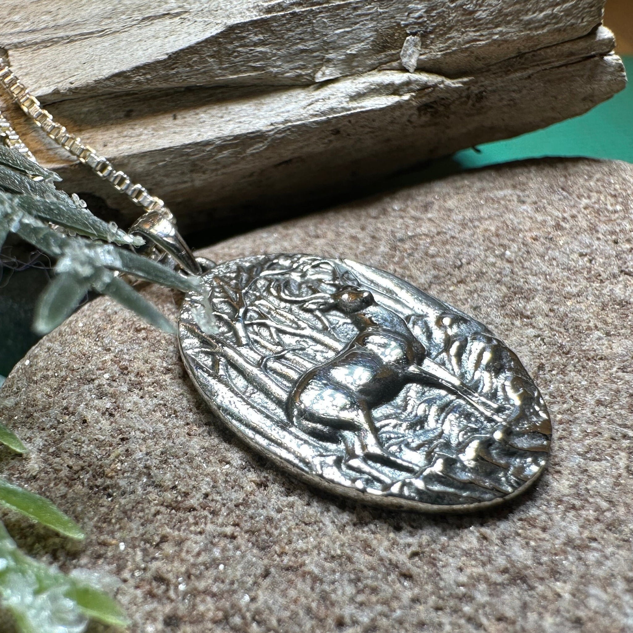 Solid Sterling Silver Stag Pendant on an 18" chain.