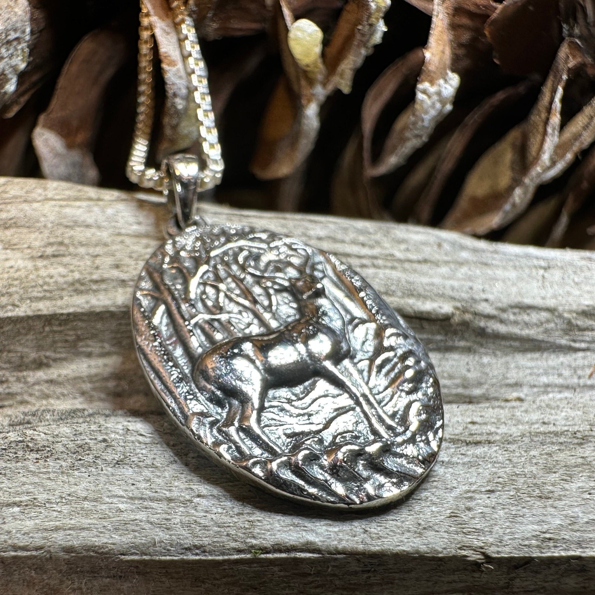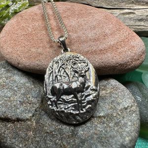 This detailed pendant shows the magestic stag in the forest - you can see the detail of the forest and even the antlers on the stag. A beautiful piece!