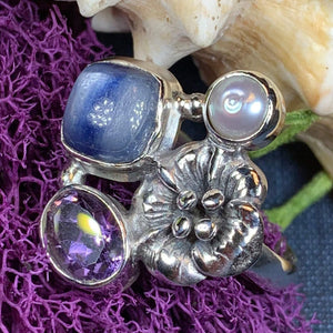 A unique realistic design combining the graceful lines of a flower in full bloom with a mosaic of gemstones in summer colors all set in solid sterling silver. A beautiful ring for everyday wear - or to dazzle on your finger. This beautiful ring will make you feel gorgeous every time you see it on your hand!