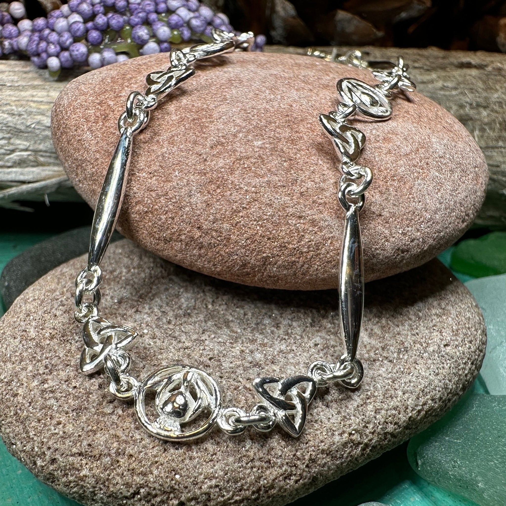 Solid Sterling Silver Thistle and Trinity Knot bracelet.