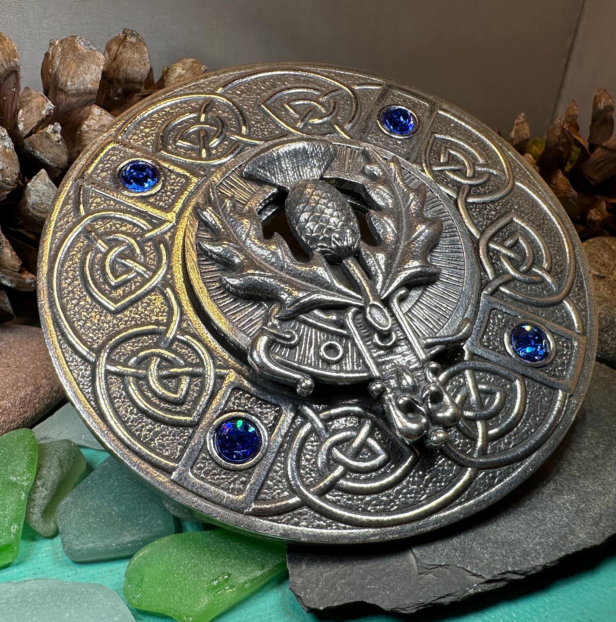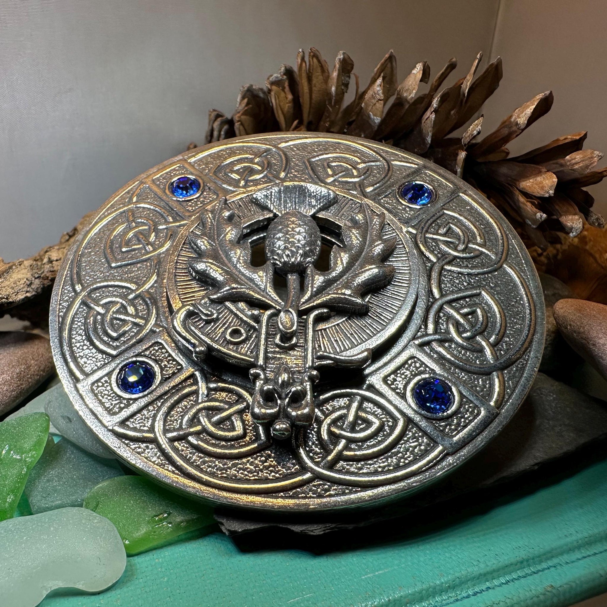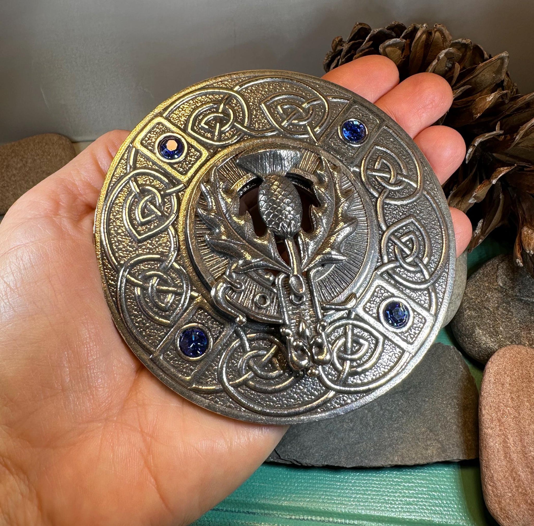Large Celtic Thistle Pewter Brooch with detailed Scottish thistle and strap design. A beautiful antiqued finish that is perfect for any lover of Scottish culture!