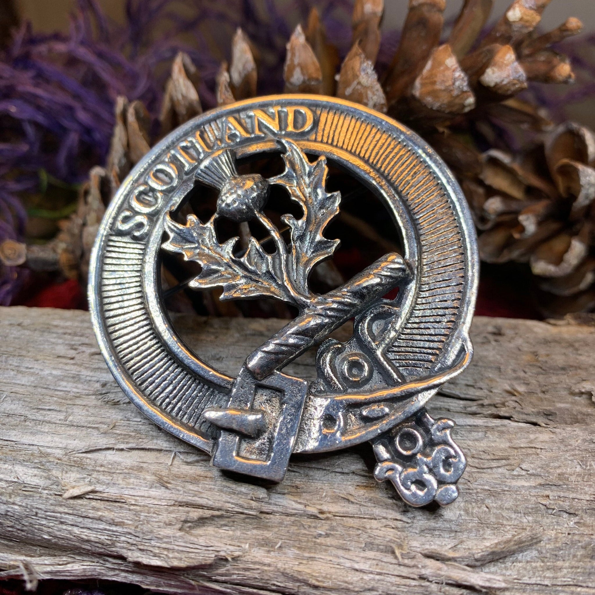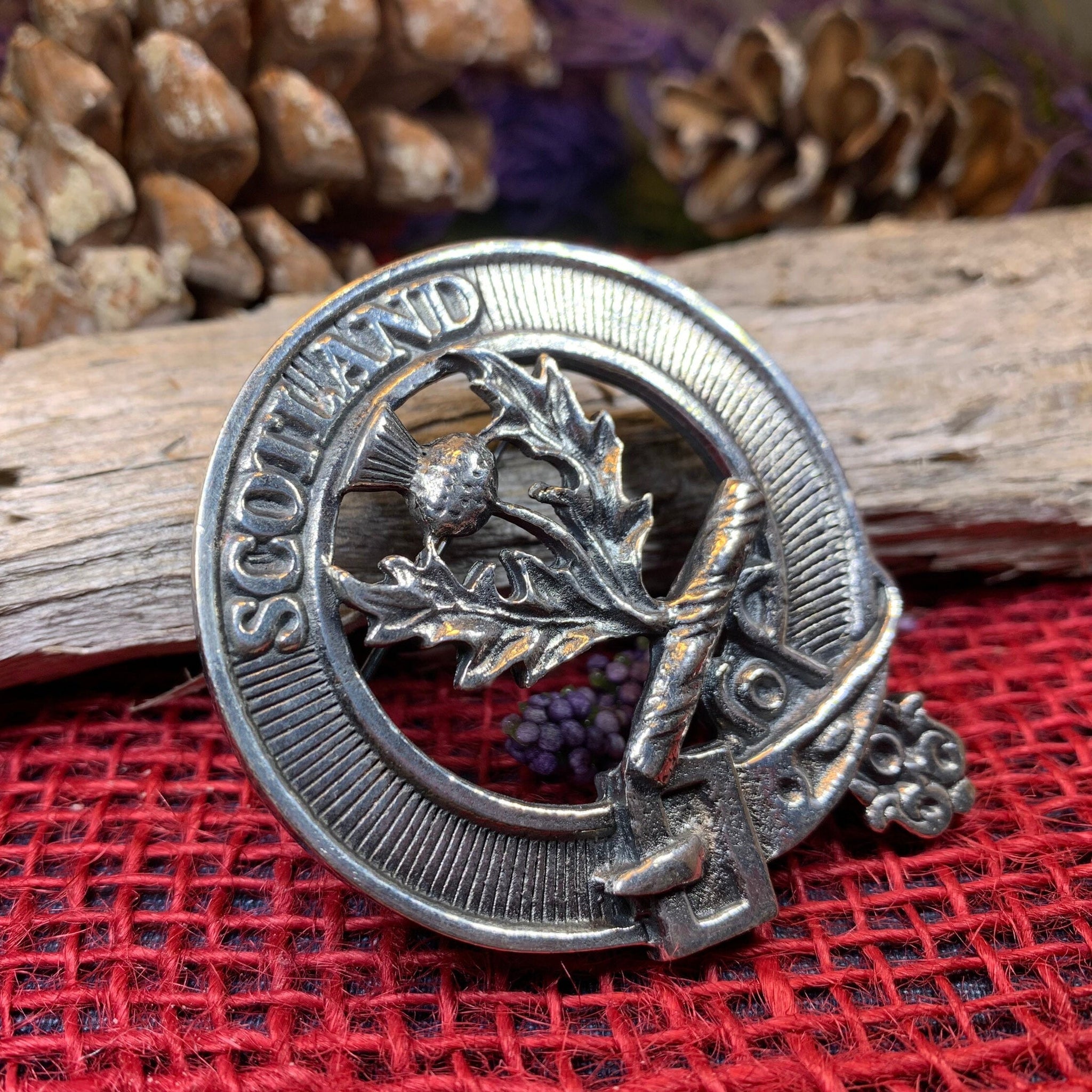 Celtic Pewter Brooch with detailed Scottish thistle and strap design. A beautiful antiqued finish that is perfect for any lover of Scottish culture!
