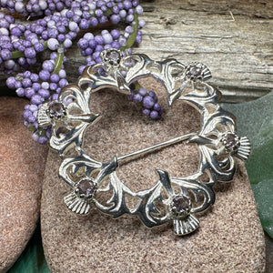 This sweet brooch alternates the thistle of Scotland with faceted amethyst gemstones to show exactly where your heart lies - in Scotland!