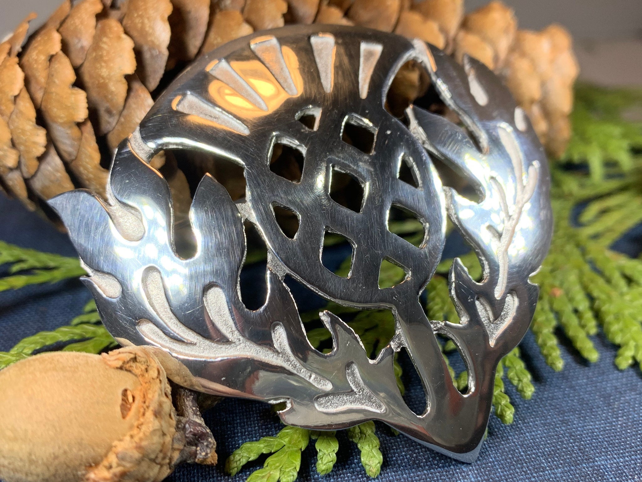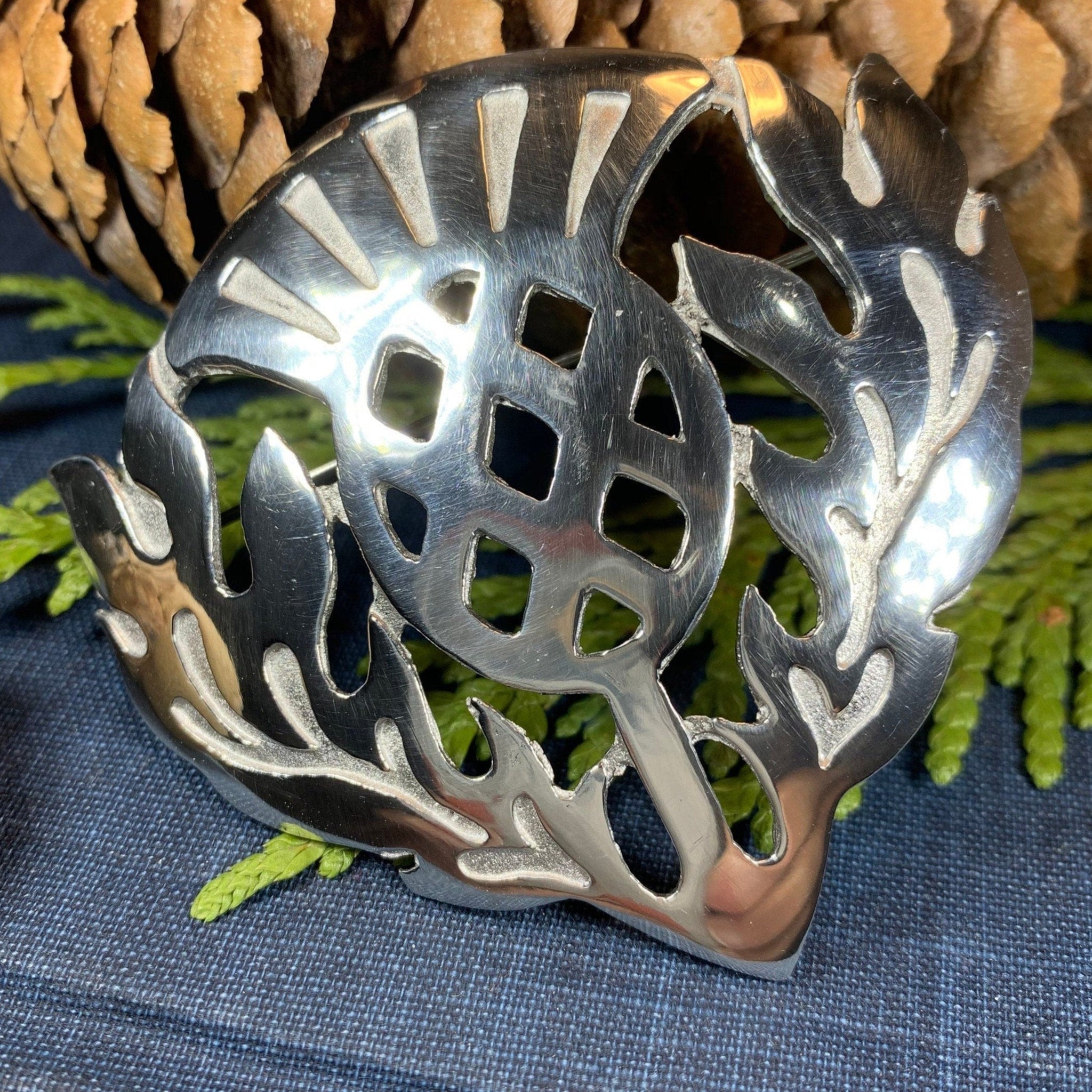 This beautiful brooch honors the sacred place of the thistle in Celtic traditions. The Scottish thistle became a national symbol, with the motto "What dares meddle with me?"