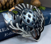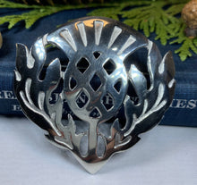 Wear the Scottish pride! 2 1/2" x 2 1/2" solid pewter thistle brooch with a 2" steel locking pin. Could be worn as a kilt pin or just a lovely brooch for any type of fabric.