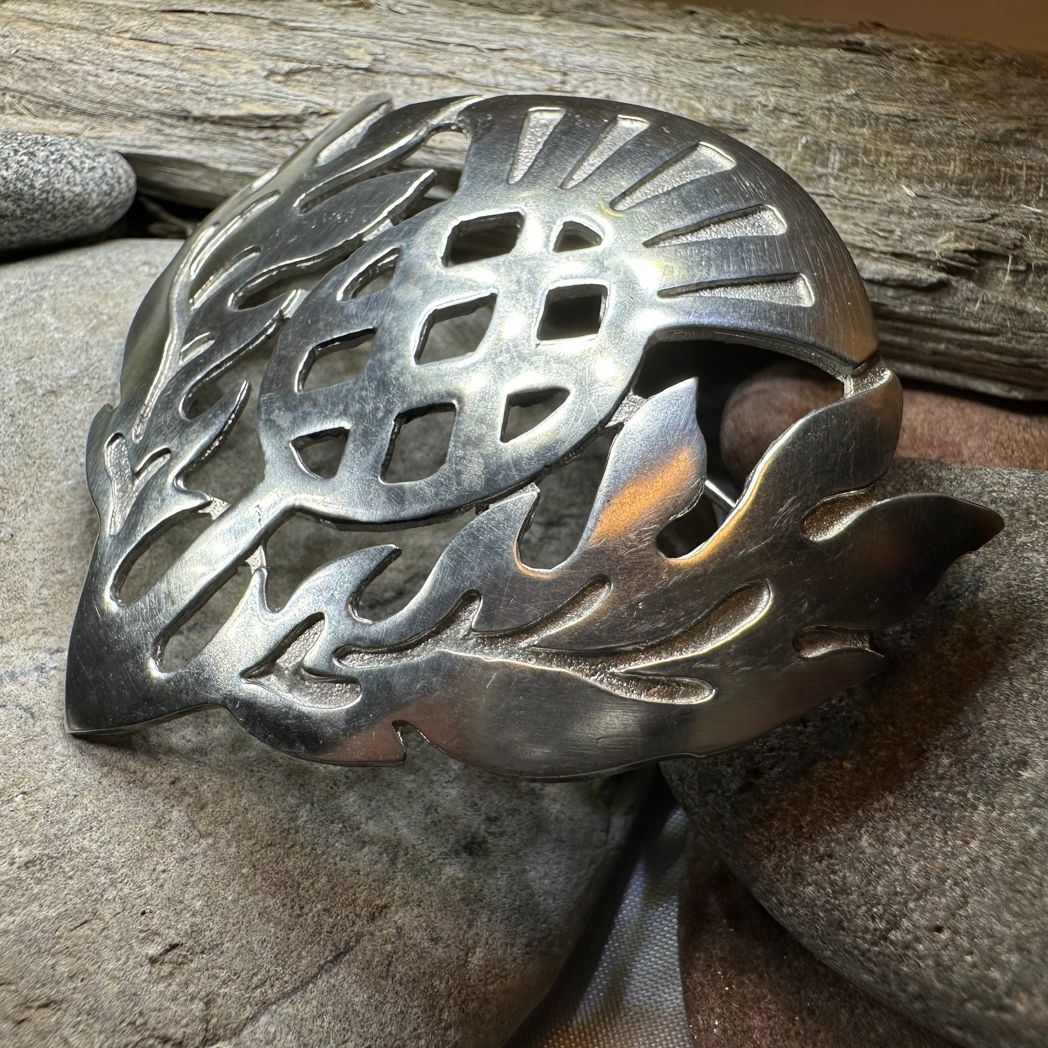 This beautiful brooch honors the sacred place of the thistle in Celtic traditions. The Scottish thistle became a national symbol, with the motto "What dares meddle with me?"